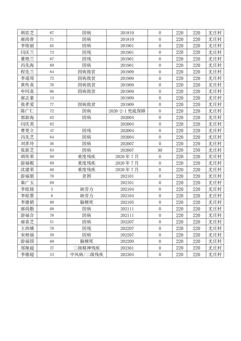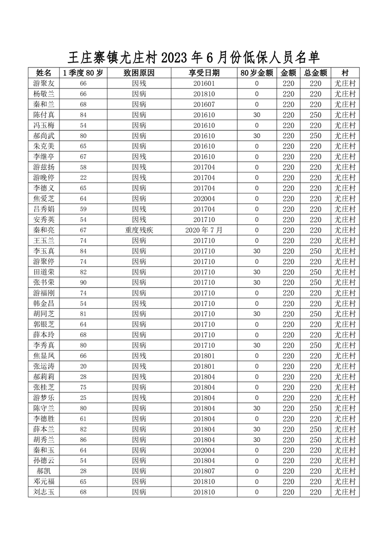 王庄寨镇尤庄村2023年6月份低保人员名单
