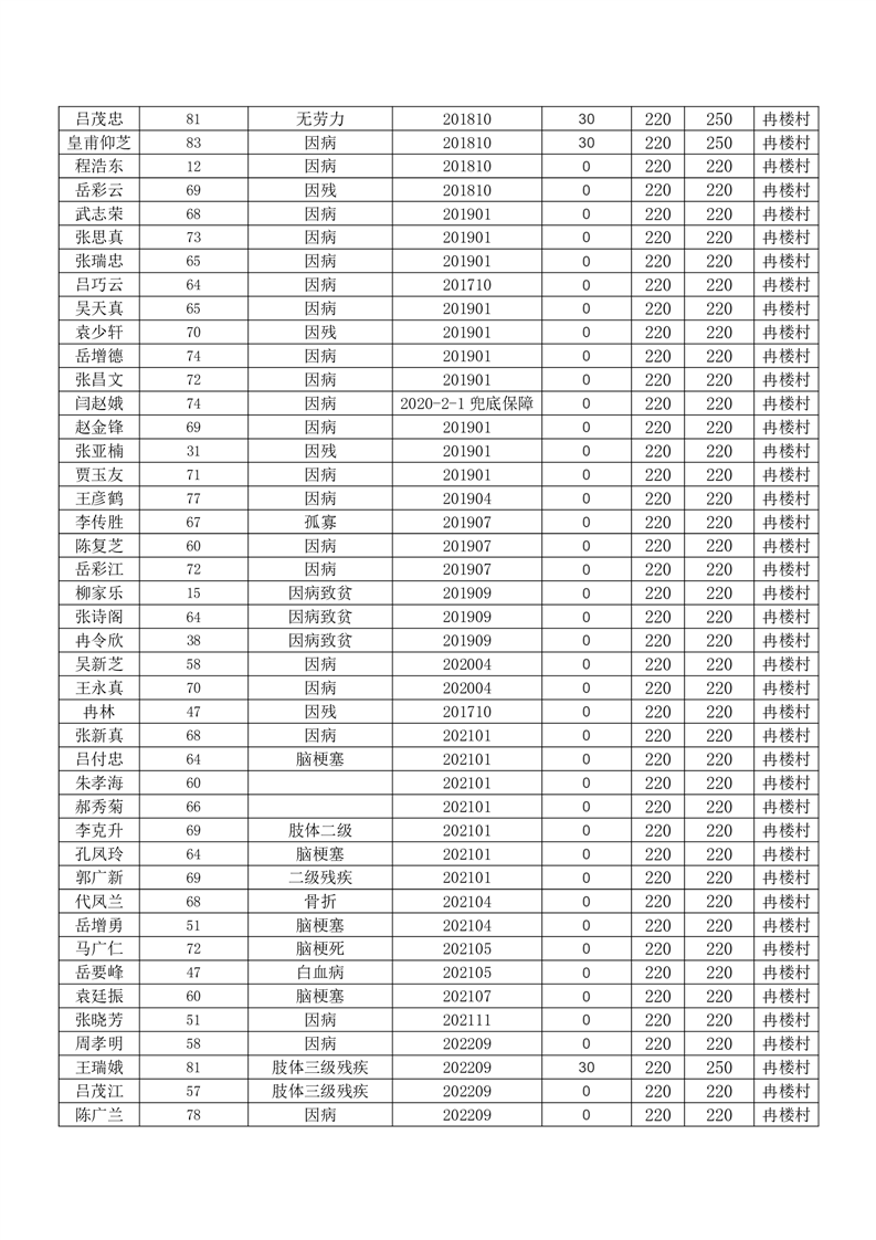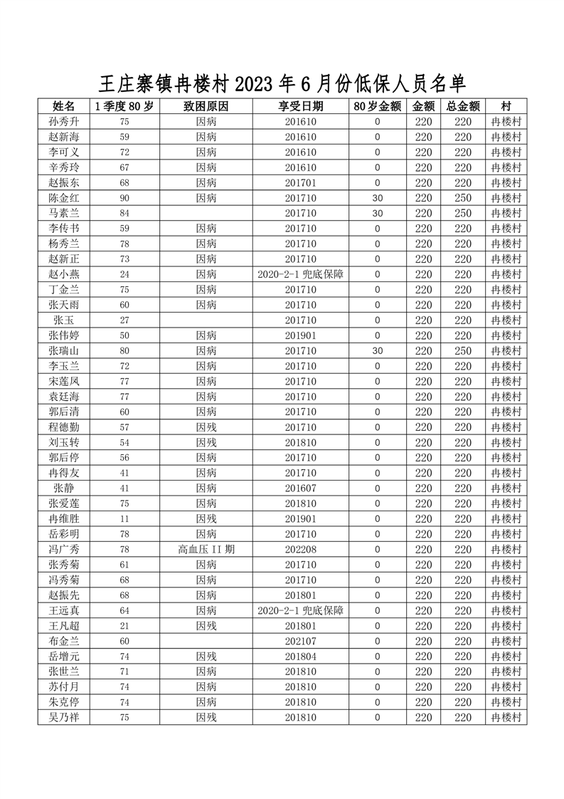 王庄寨镇冉楼村2023年6月份低保人员名单