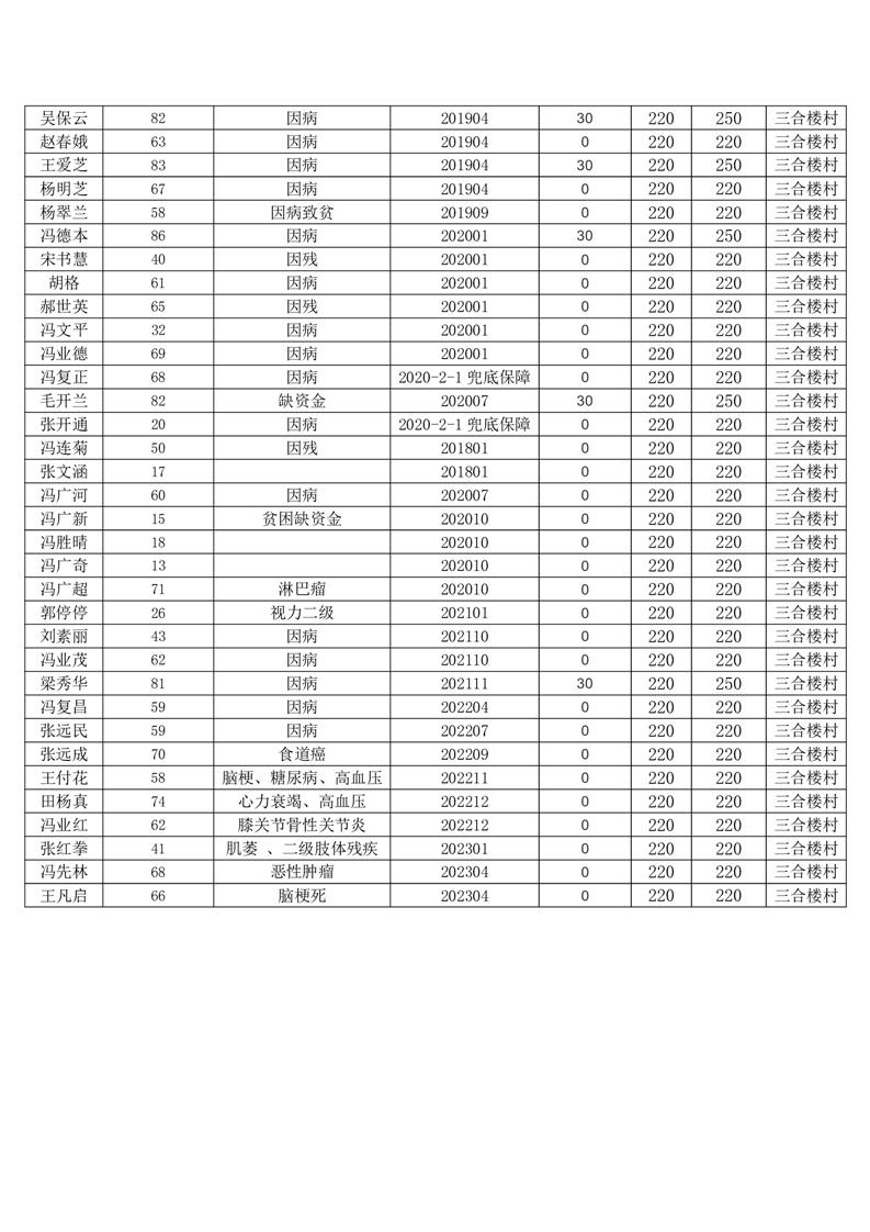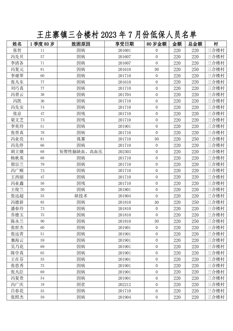 王庄寨镇三合楼村2023年7月份低保人员名单