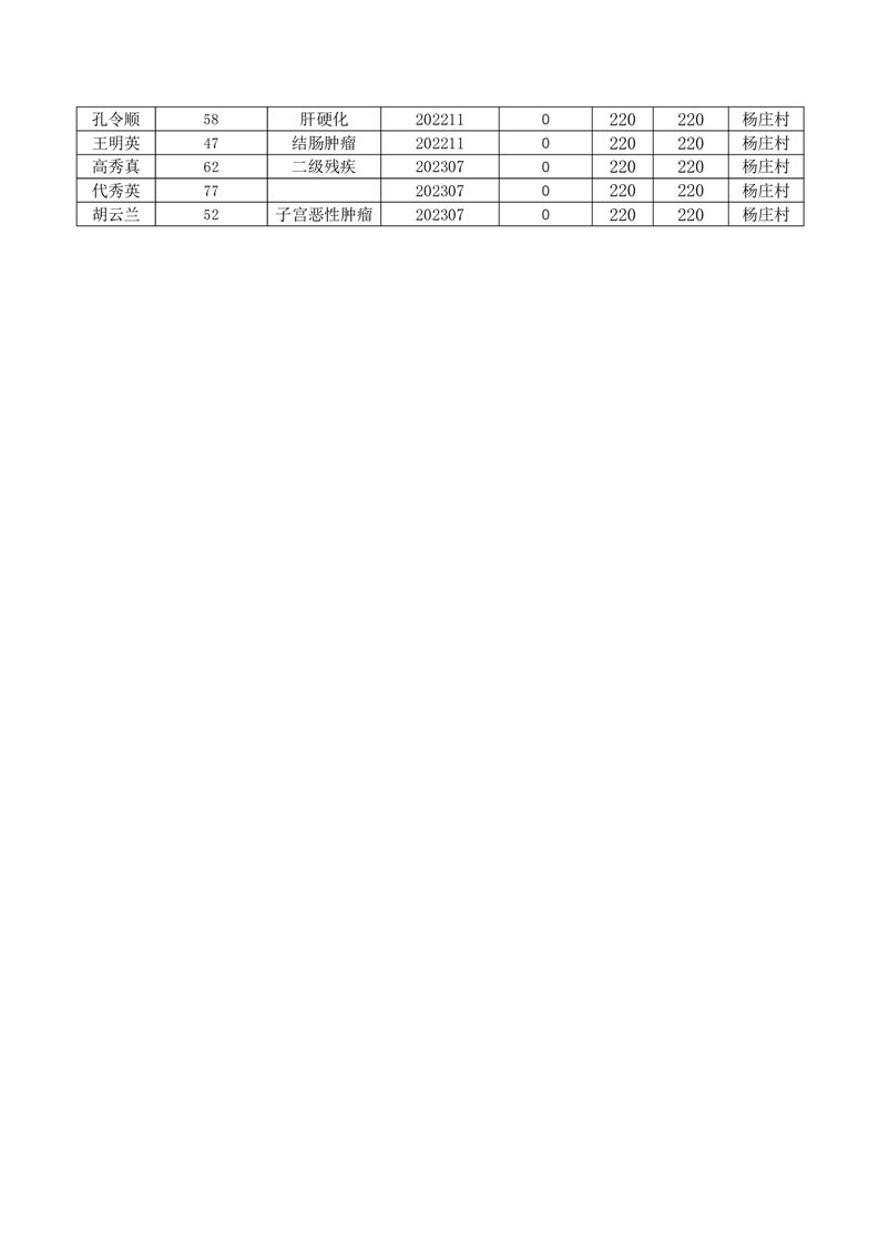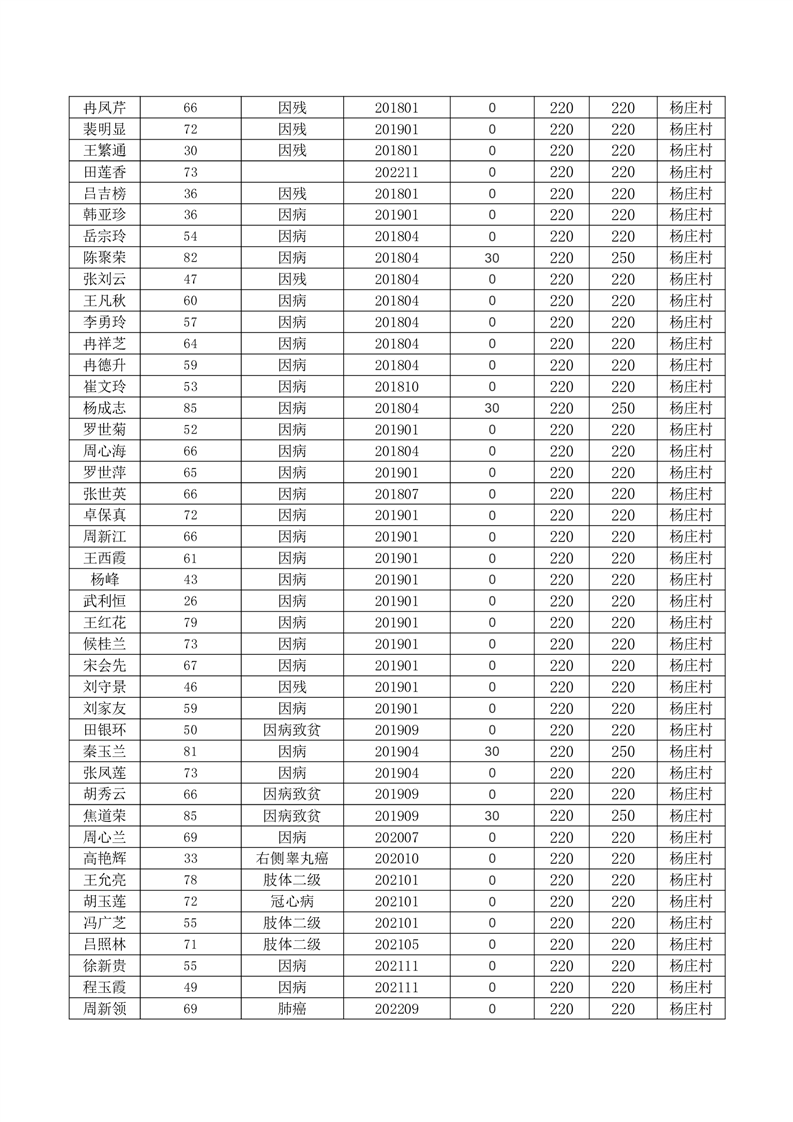 王庄寨镇杨庄村2023年7月份低保人员名单