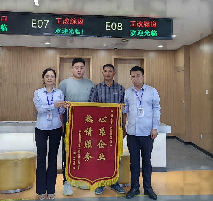 7月3日上午,民权县爱绿城环保科技有限责任公司负责人将一面绣有“心系企业、热情服务”锦旗送至民权县国土空间规划编制研究中心审批办公室,感谢工作人员帮助企业解决公司在办证过程中遇到的难题,对县国土空间规划编研中心近日来在规划要素保障方面给予的优质高效服务表达诚挚谢意。