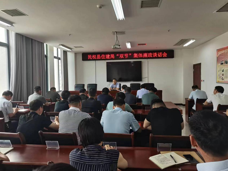 2023年中秋、国庆佳节将至,为深入贯彻落实中央八项规定及其实施细则精神,锲而不舍纠“四风”,严防“节日腐败”,营造风清气正的节日氛围,9月18日,县住建局组织召开“双节”集体廉政谈话会。局中层以上干部参加会议。