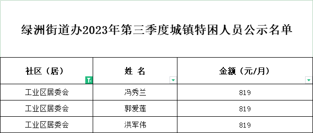绿洲街道办2023年第三季度城镇特困人员公示名单