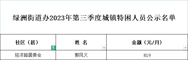 绿洲街道办2023年第三季度城镇特困人员公示名单