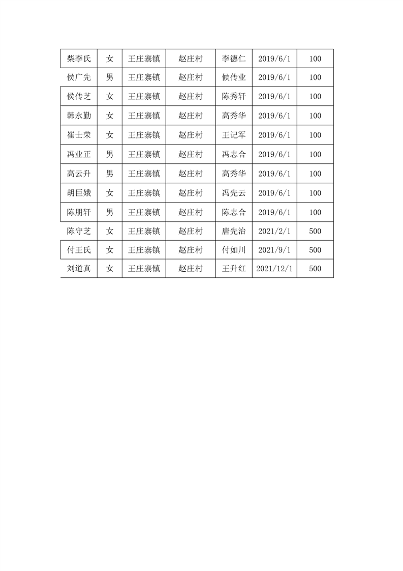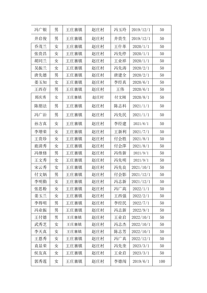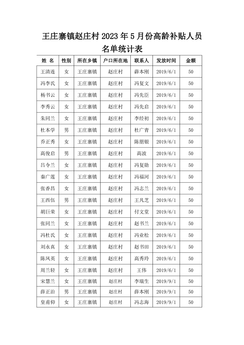 王庄寨镇赵庄村2023年5月份高龄补贴人员名单统计表