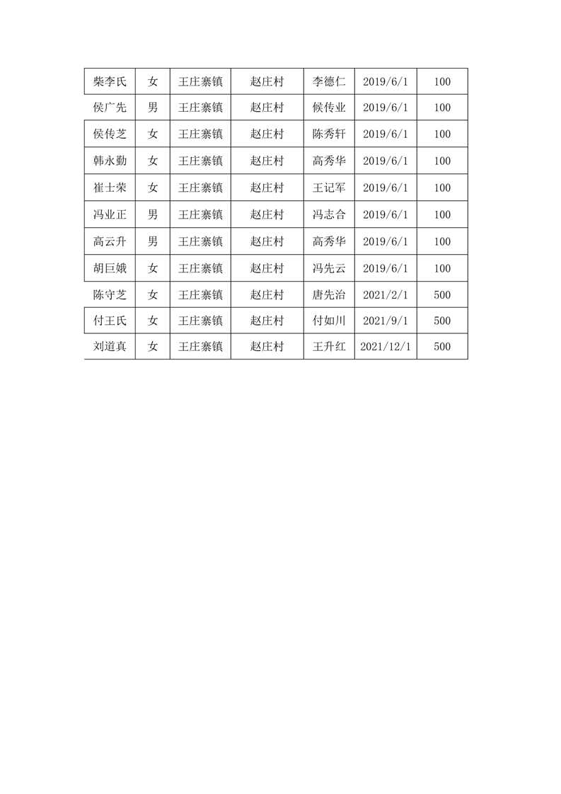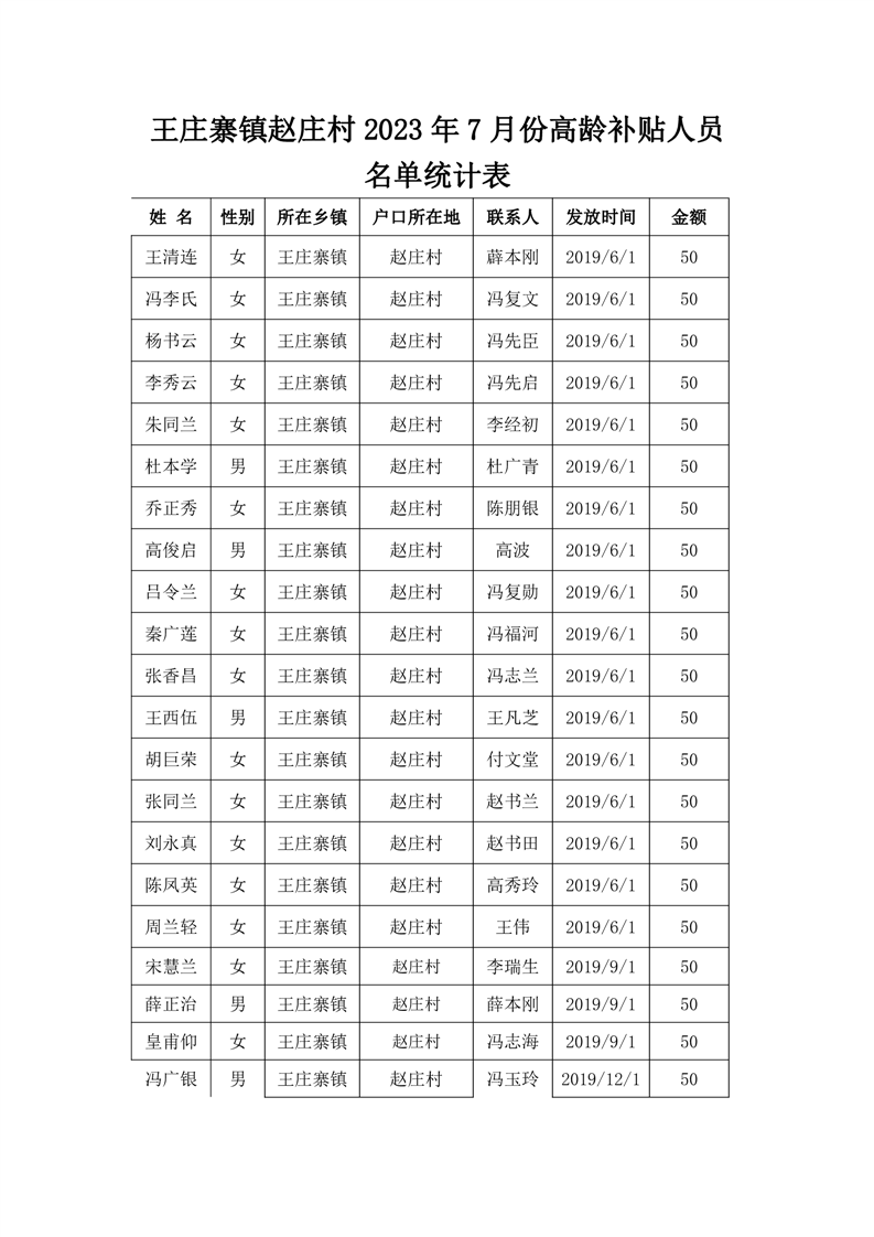 王庄寨镇赵庄村2023年7月份高龄补贴人员名单统计表