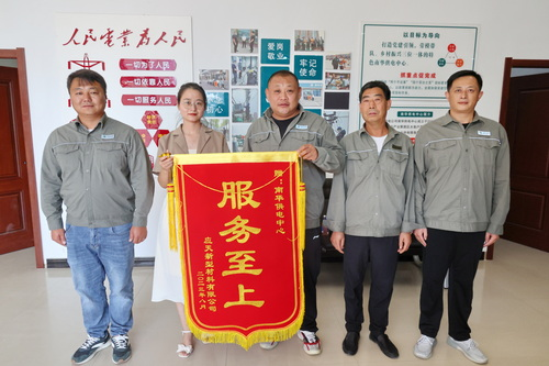 8月29日下午,民权县工业园区应天新型材料有限公司负责人来到公司南华供电中心办公区,将一面写有“服务至上”字样的锦旗送到供电中心工作人员手中,对供电抢修人员高效、贴心的优质服务表示感谢。
