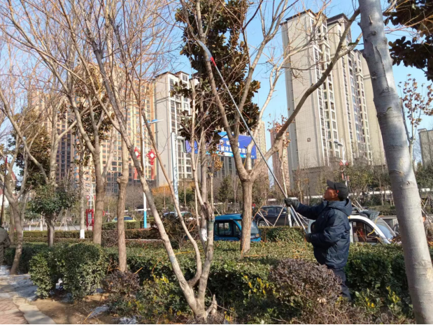 冬季养护,首先要做好冬季树木修剪工作。工作人员根据树木不同的树种习性、自然树型和景观特性,将枯死枝、衰弱枝、病虫枝等一并剪下,并对生长过旺枝进行适当回缩,这样一来就改善了树冠内部的通风透光条件,达到均衡树势、保持树形优美的目的,突出冬季园林绿化景观。而对于部分修剪中产生的较大伤口,工作人员用树木修复剂涂抹,以保护树木枝干生长。民权县城区各公园绿地的乔木、灌木已于11月中上旬开始修剪,行道树也在持续修剪中,保证冬日街面的明亮透光。