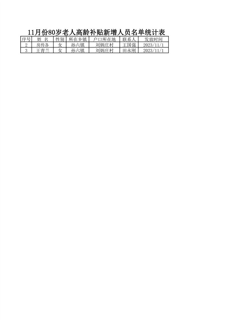 刘炳庄村2023年11月新增高龄补贴名单
