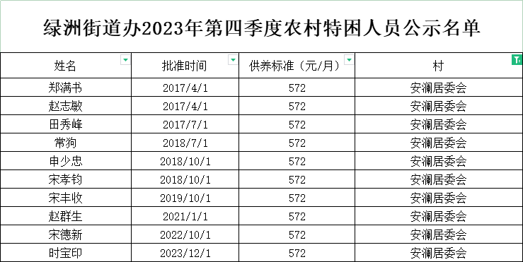 绿洲街道办2023年第四季度农村特困人员公示名单