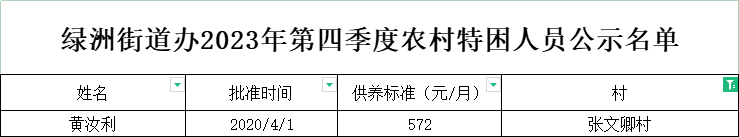 绿洲街道办2023年第四季度农村特困人员公示名单