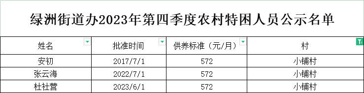 绿洲街道办2023年第四季度农村特困人员公示名单