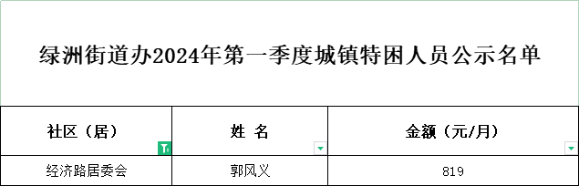 绿洲街道办2024年第一季度城镇特困人员公示名单