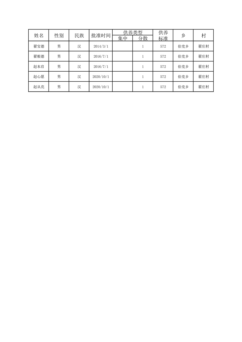 伯党乡翟庄村2023年12月份农村五保人员名单