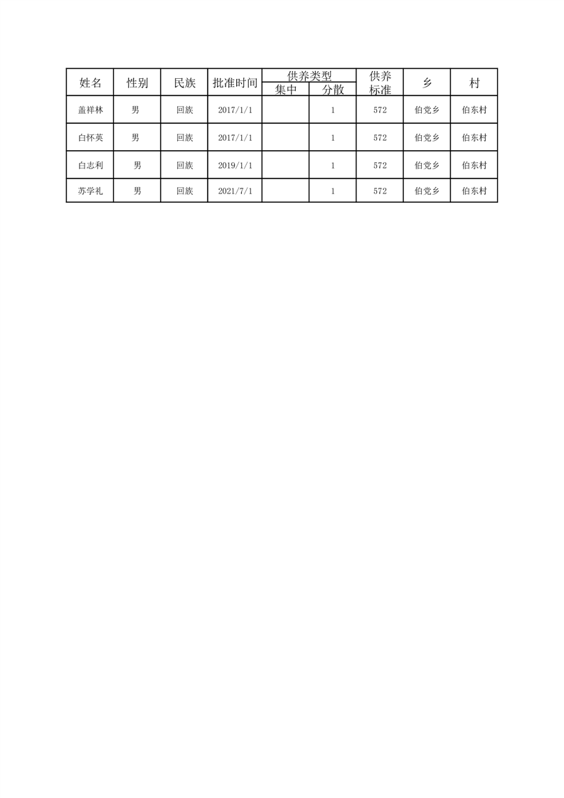 伯党乡伯东村2023年12月份农村五保人员名单