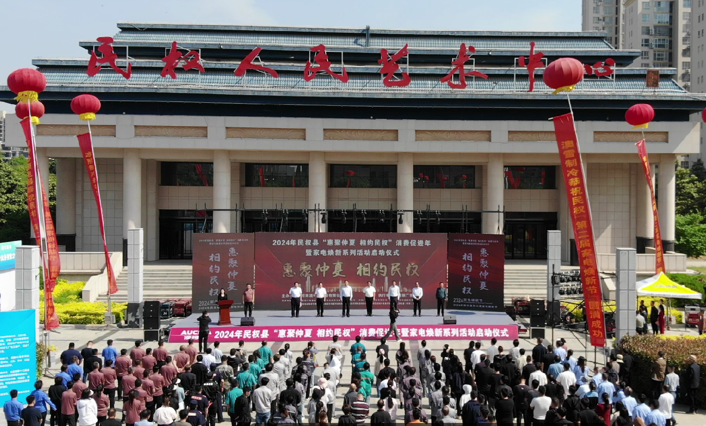 5月2日上午,2024年民权县“惠聚仲夏·相约民权”消费促进年暨家电焕新系列活动启动仪式在人民艺术中心举行。县委副书记、县长王景义,省商务厅服务贸易和商贸服务业处处长张红军,市商务局副局长曹磊,县领导陈进领、韩德勇、牛凯出席启动仪式,朱琳主持启动仪式。
