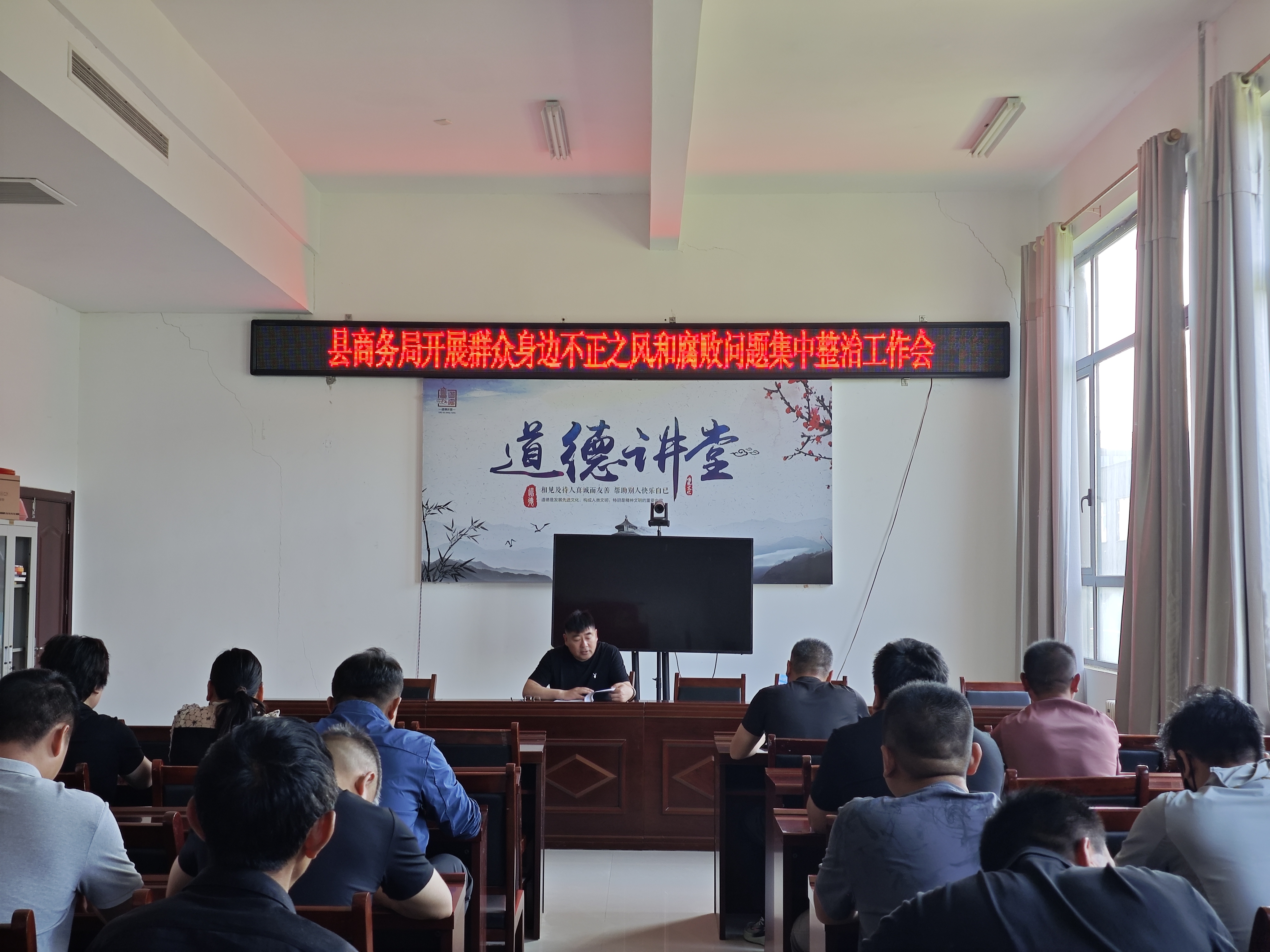 2024年5月10日,县商务局在局二楼会议室召开开展群众身边不正之风和腐败问题集中整治工作会。局机关全体人员参加会议,会议由局党成员皇甫泽印同志主持。