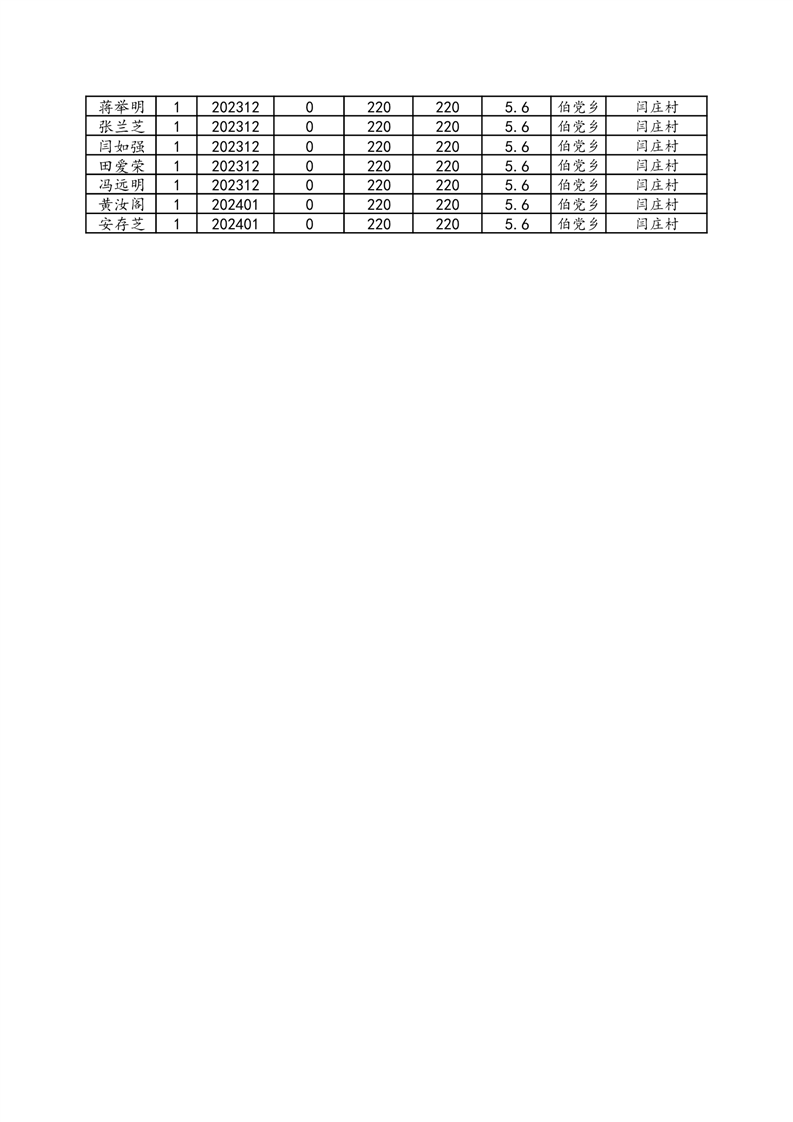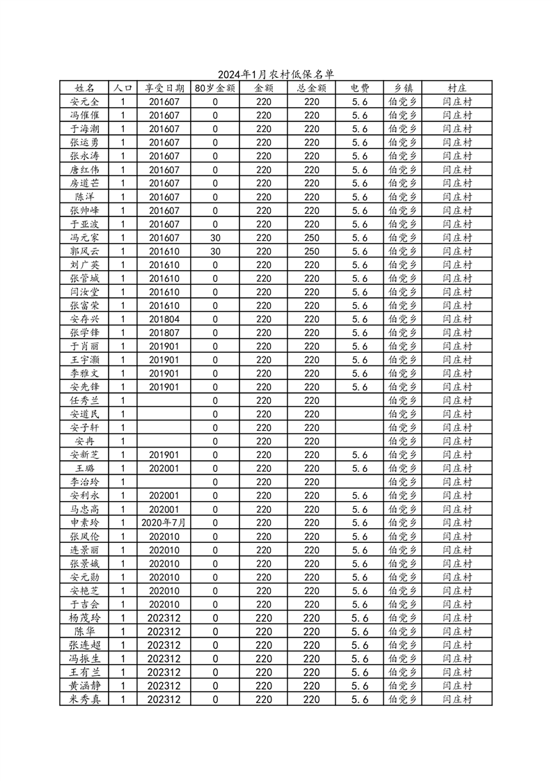 伯党乡闫庄村2024年1月份农村低保人员名单