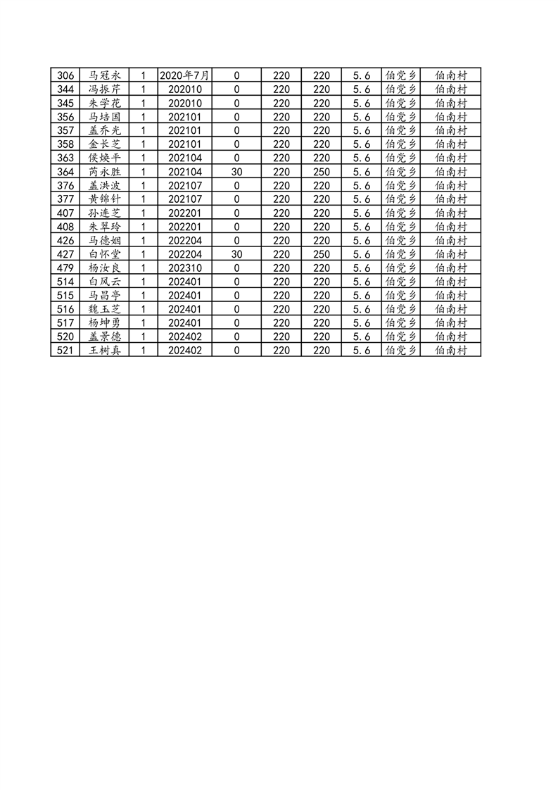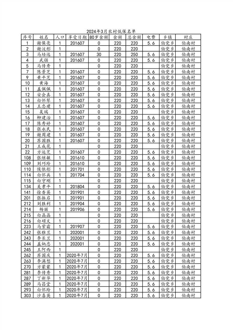 伯党乡伯南村2024年3月份农村低保人员名单
