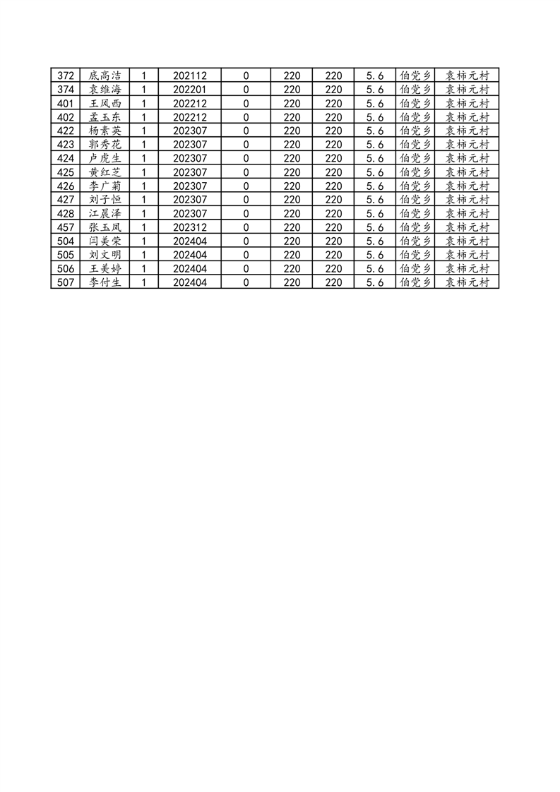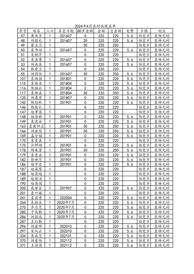 伯党乡袁柿元村2024年4月份农村低保人员名单