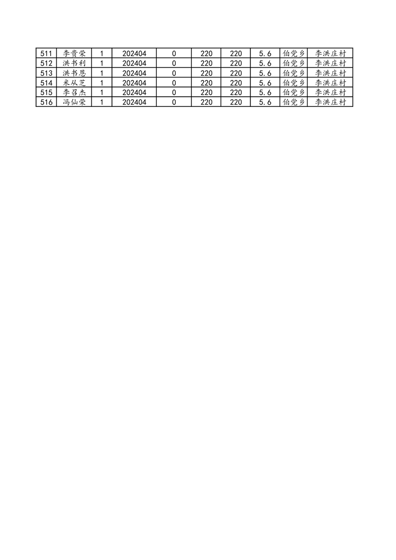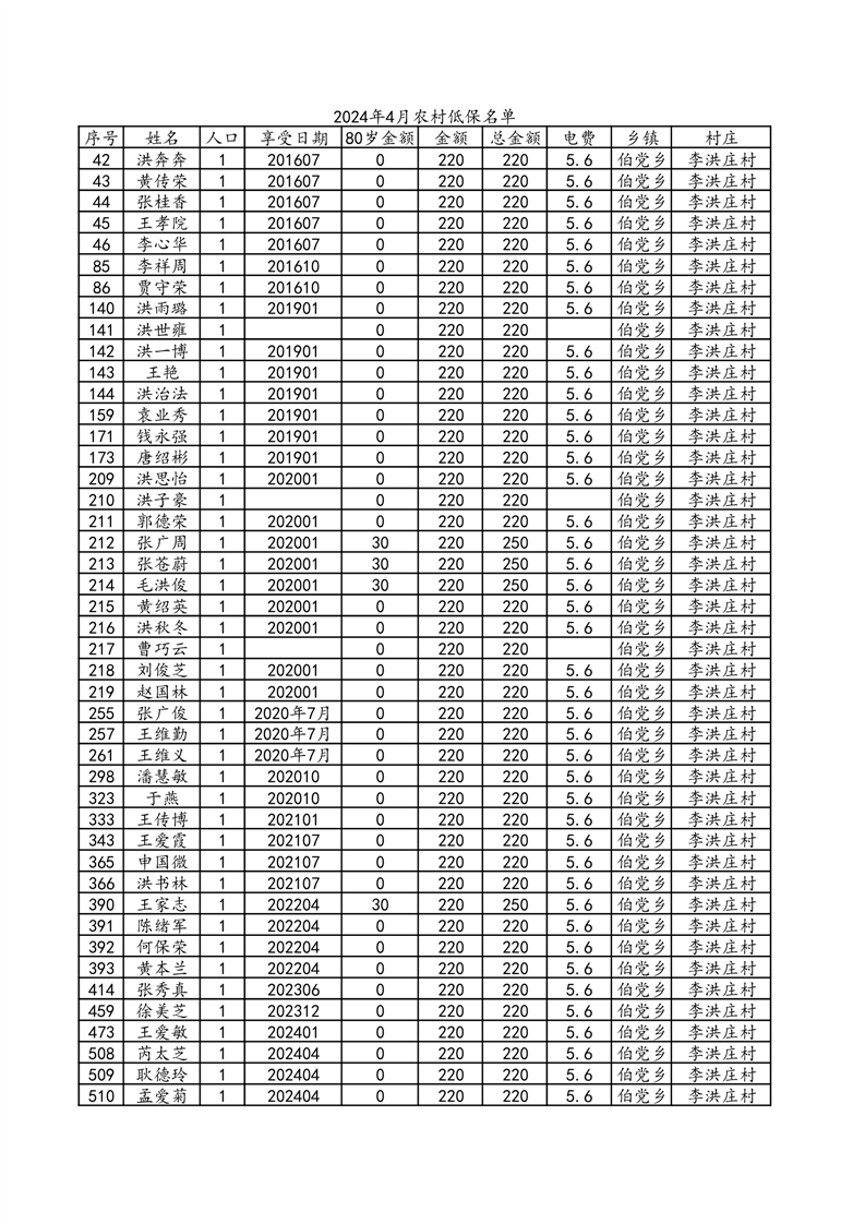伯党乡李洪庄村2024年4月份农村低保人员名单