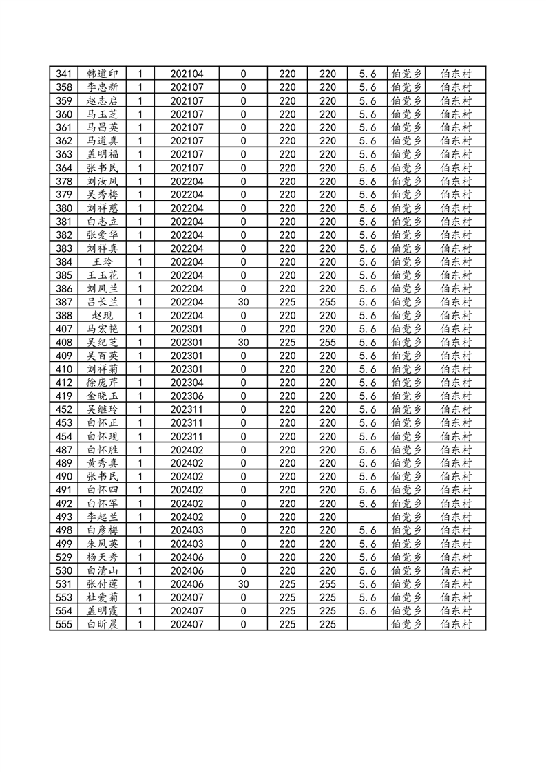 伯党乡伯东村2024年7月份农村低保人员名单