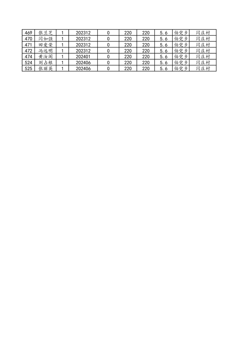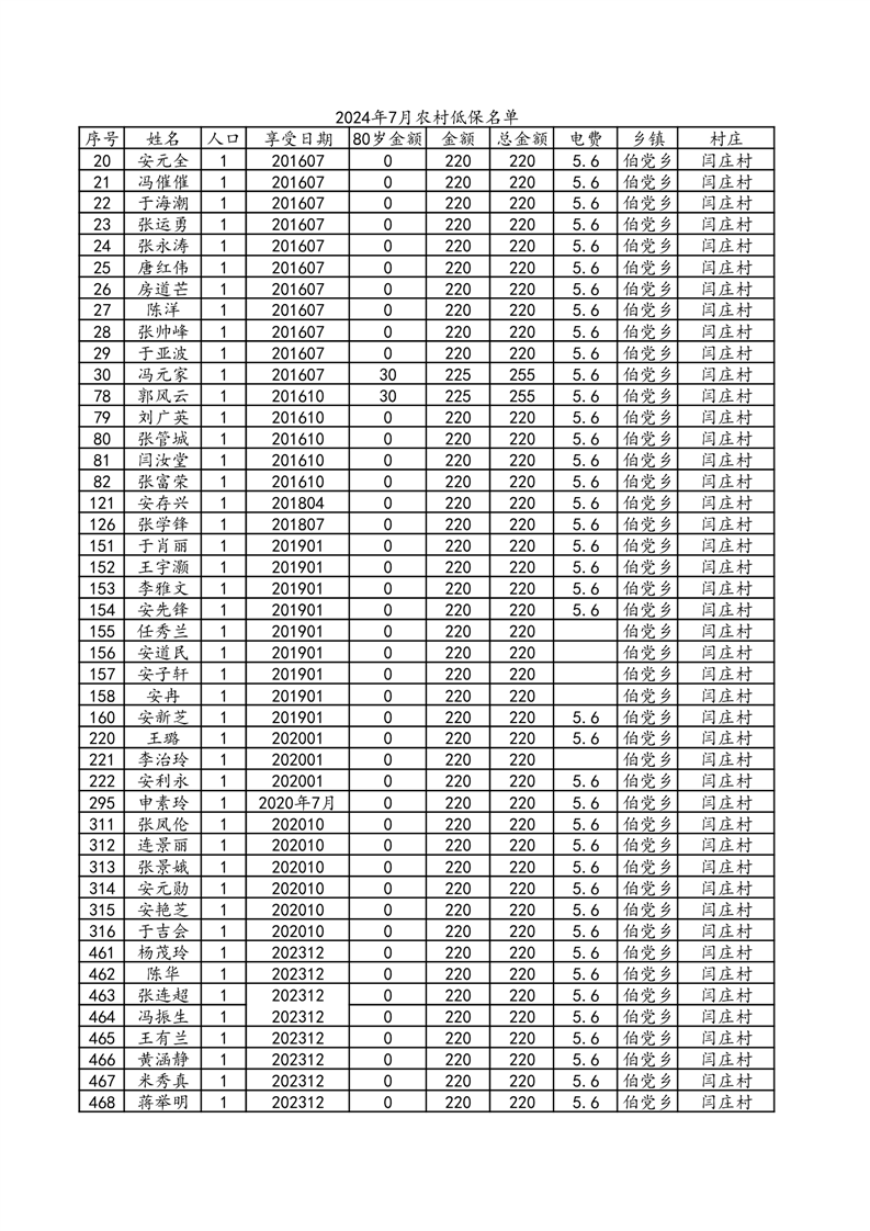 伯党乡闫庄村2024年7月份农村低保人员名单