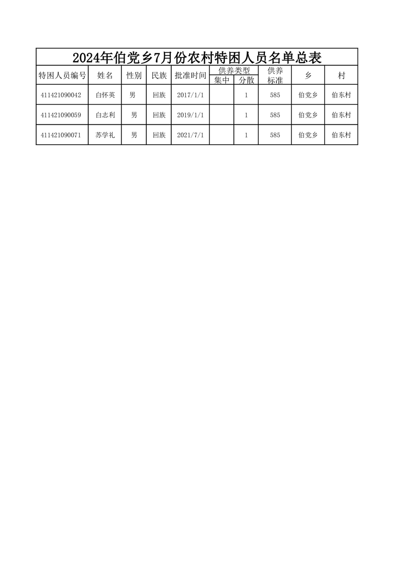 伯党乡伯东村2024年7月份农村五保人员名单