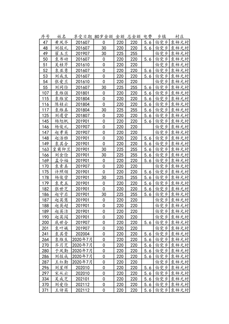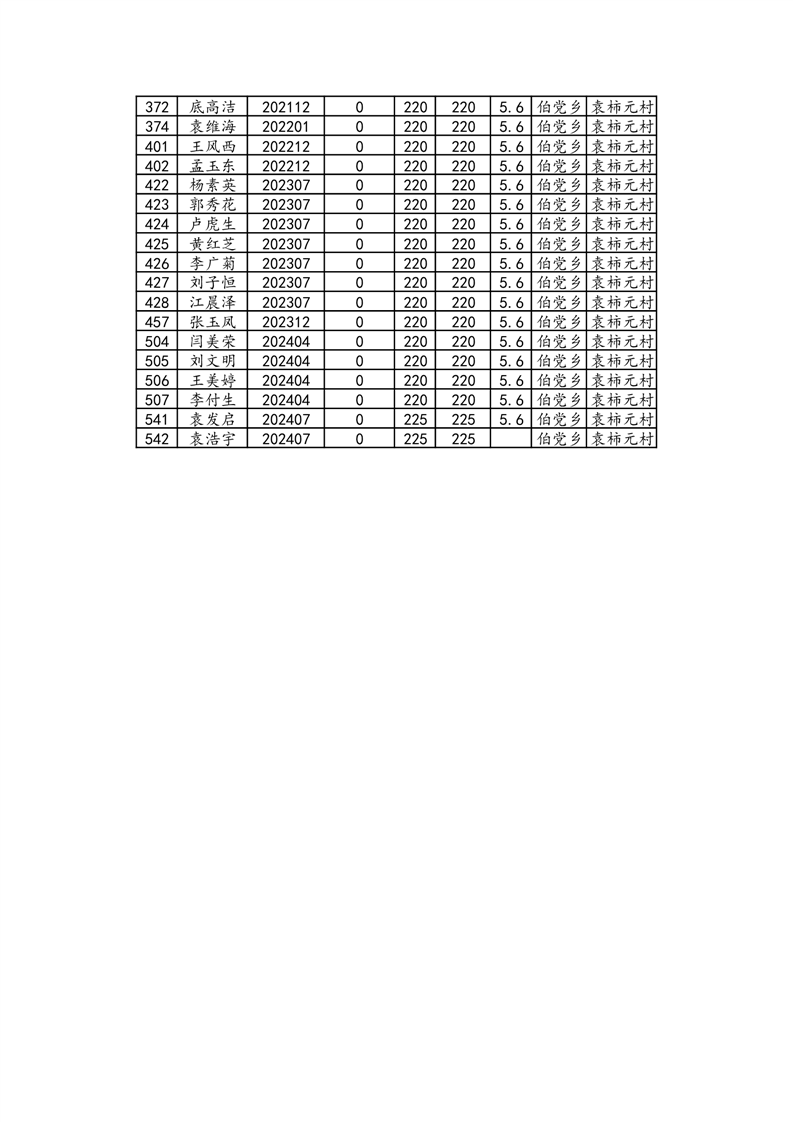 伯党乡袁柿元村2024年8月份农村低保人员名单
