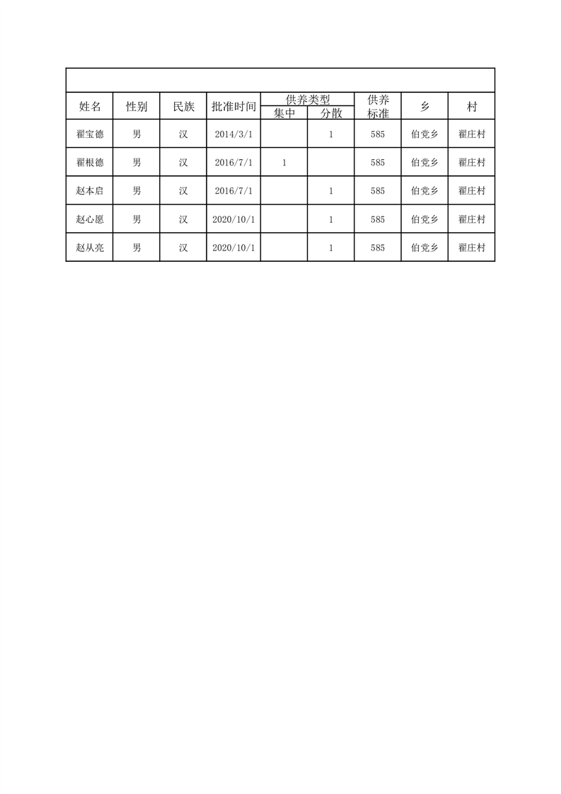 伯党乡翟庄村2024年8月份农村五保人员名单