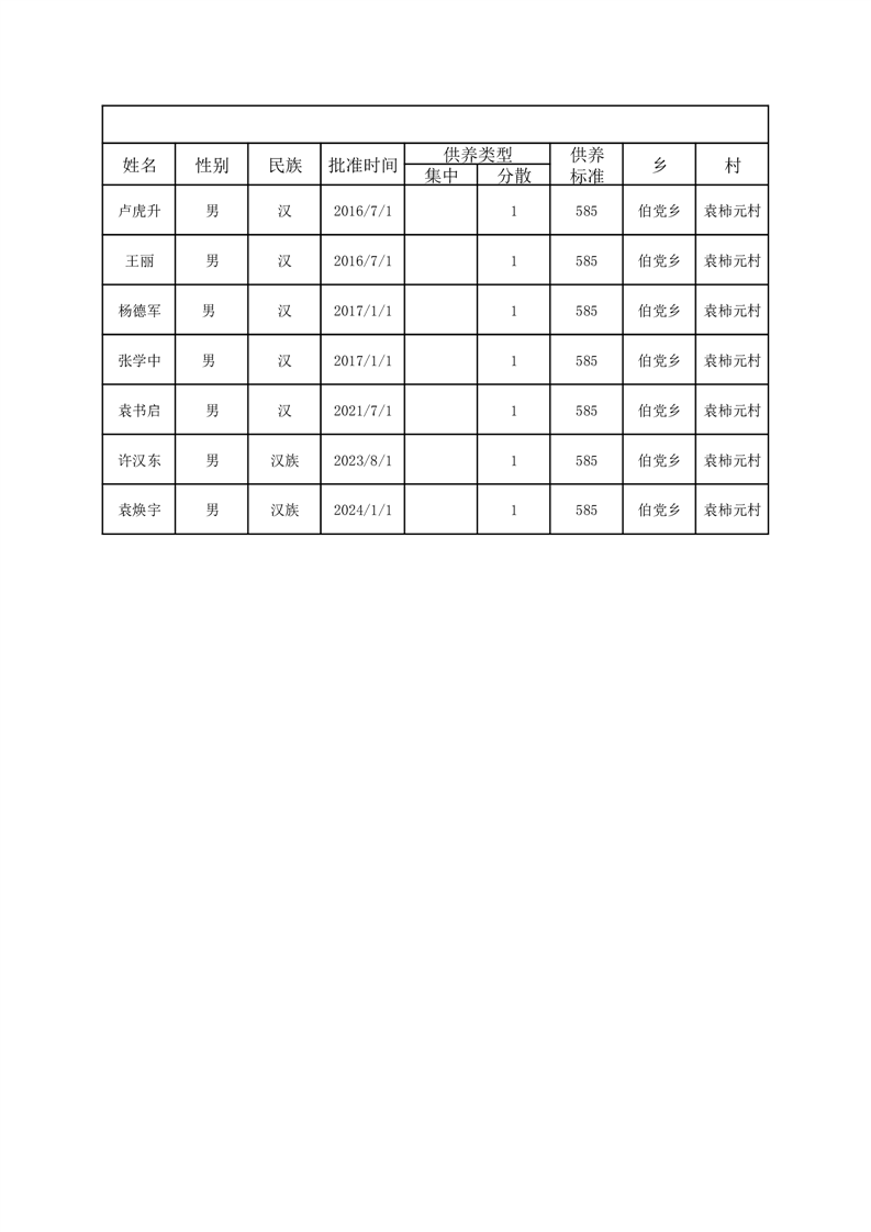 伯党乡袁柿元村2024年9月份农村五保人员名单