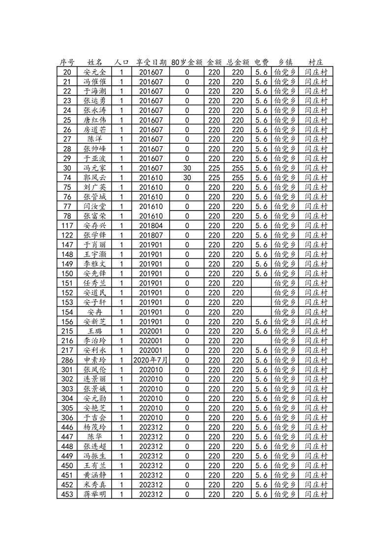 伯党乡闫庄村2024年10月份农村低保人员名单