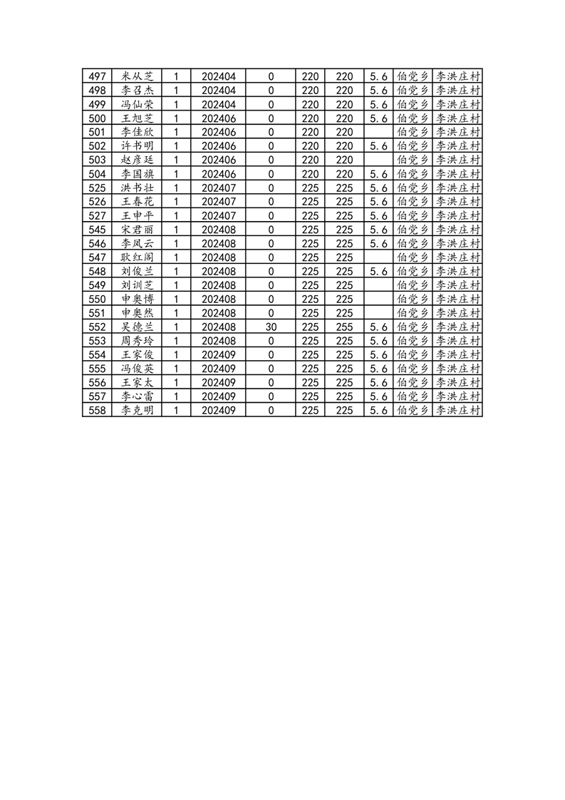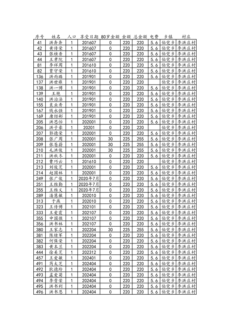 伯党乡李洪庄村2024年10月份农村低保人员名单