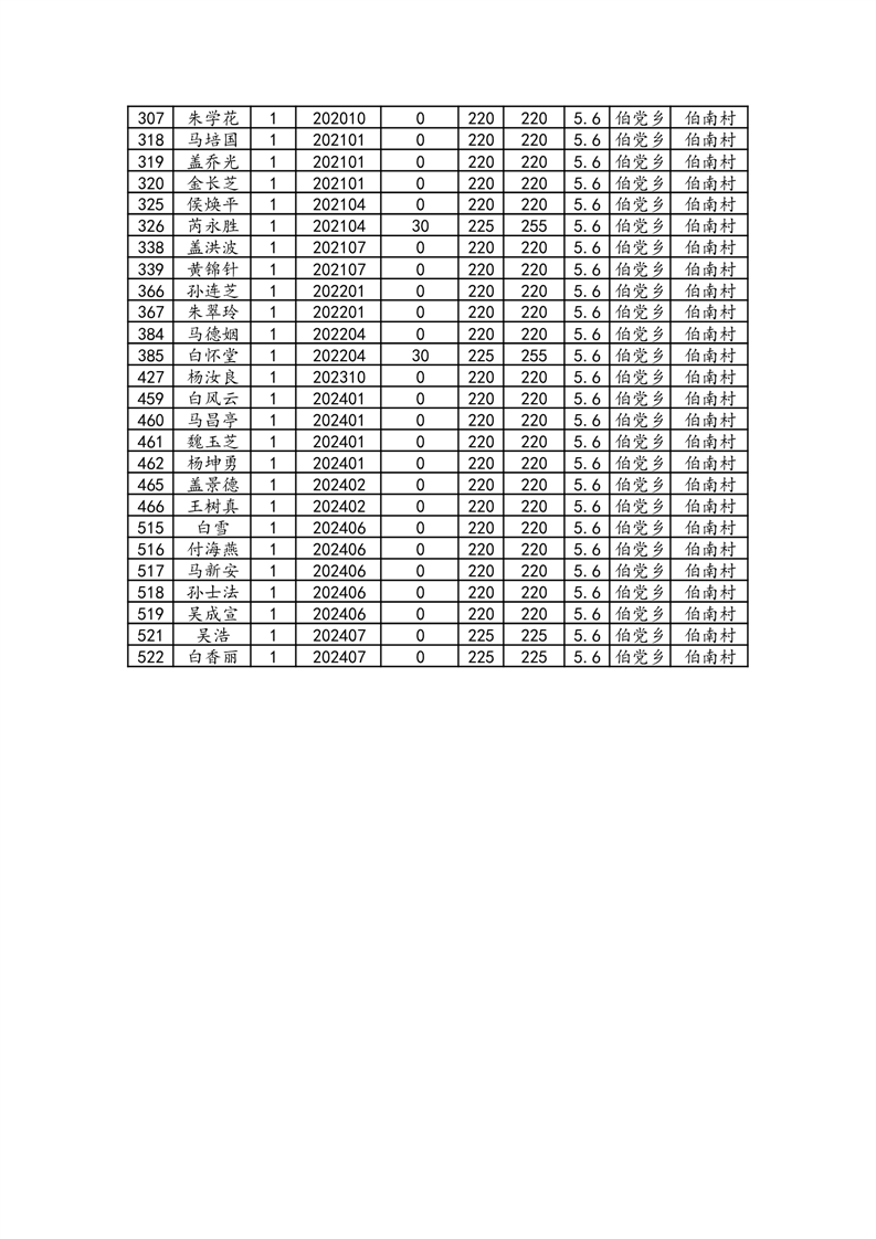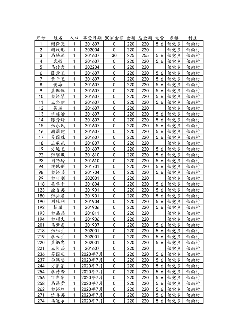 伯党乡伯南村2024年11月份农村低保人员名单