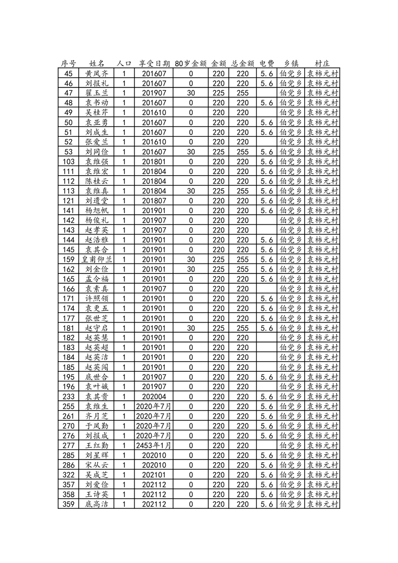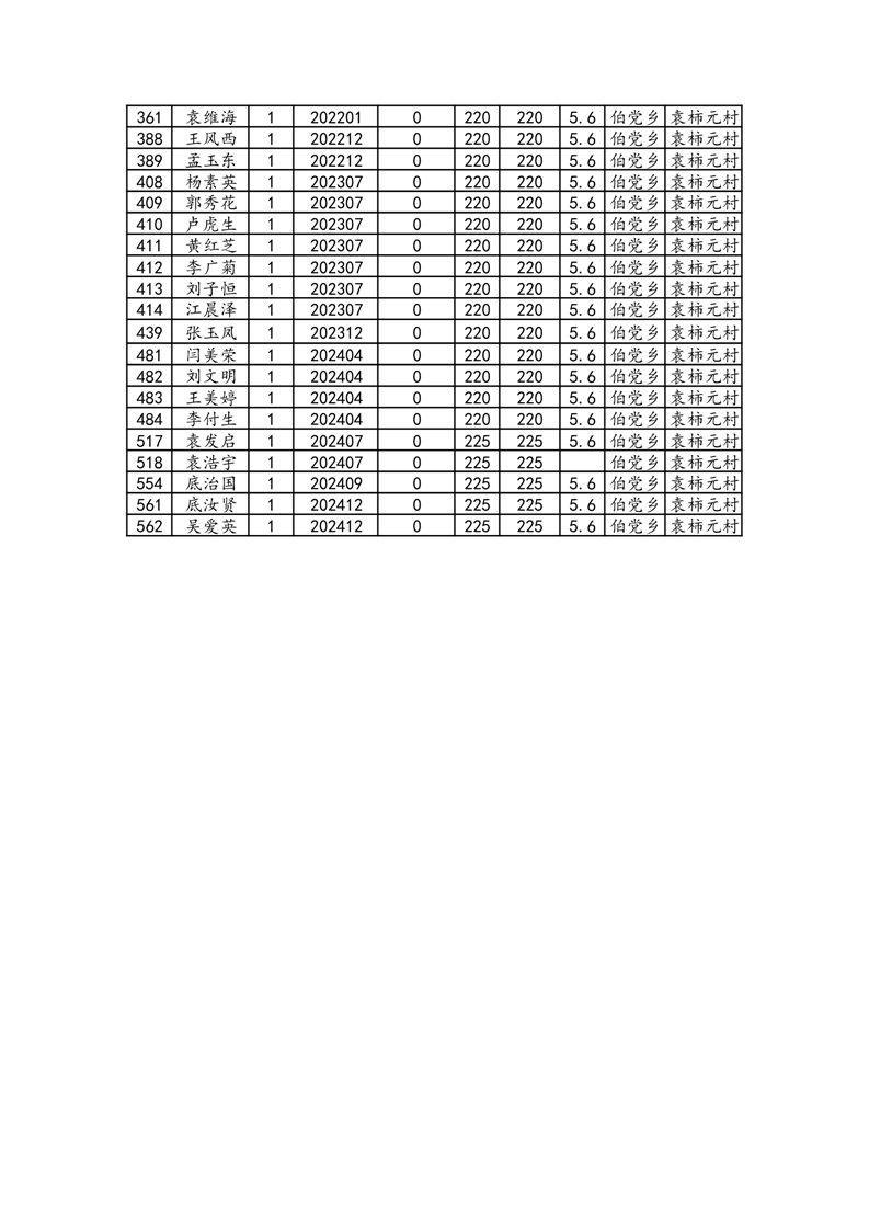 伯党乡袁柿元村2024年12月份农村低保人员名单