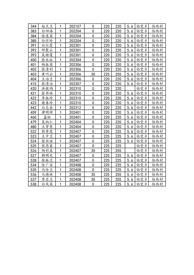伯党乡伯西村2024年12月份农村低保人员名单