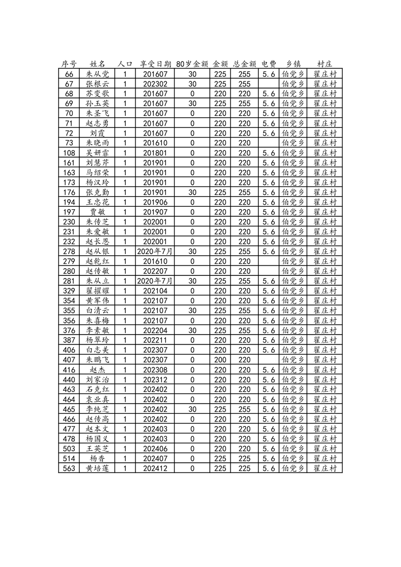 伯党乡翟庄村2024年12月份农村低保人员名单