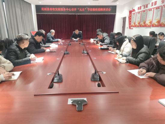 元旦将至,为深入贯彻落实中央八项规定精神,防止“四风”问题反弹,确保廉洁、文明过节,12月30日,县畜牧发展服务中心召开“元旦”节前廉政提醒谈话会,全体党员干部参加。