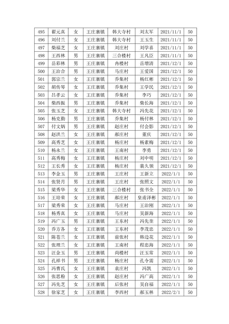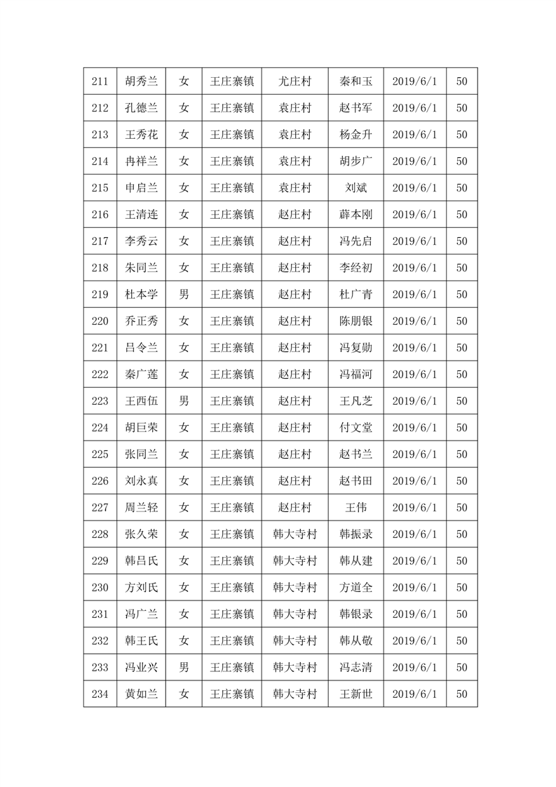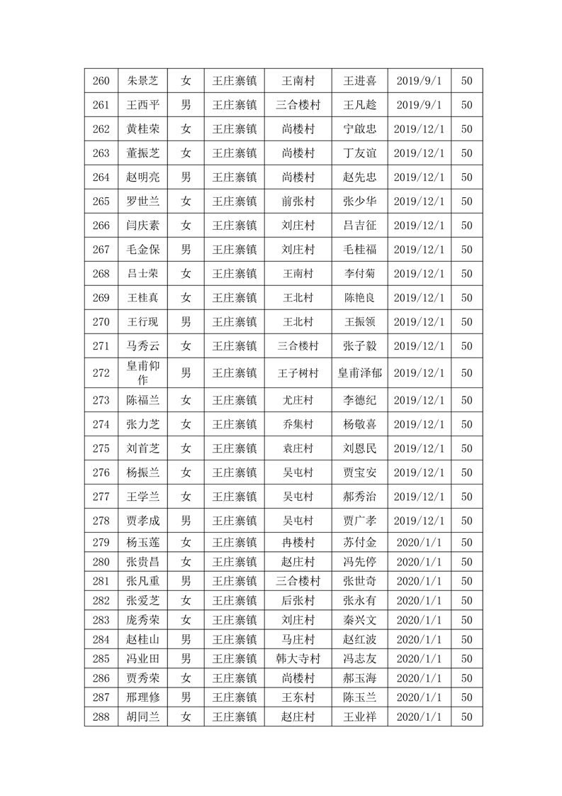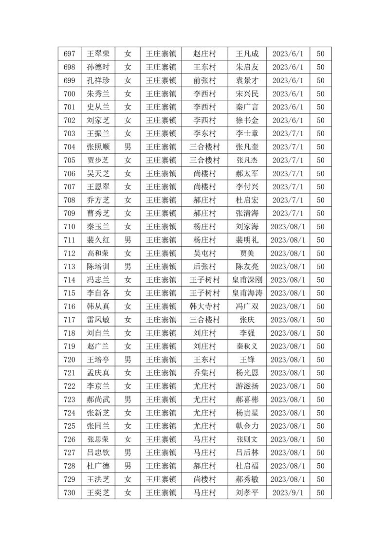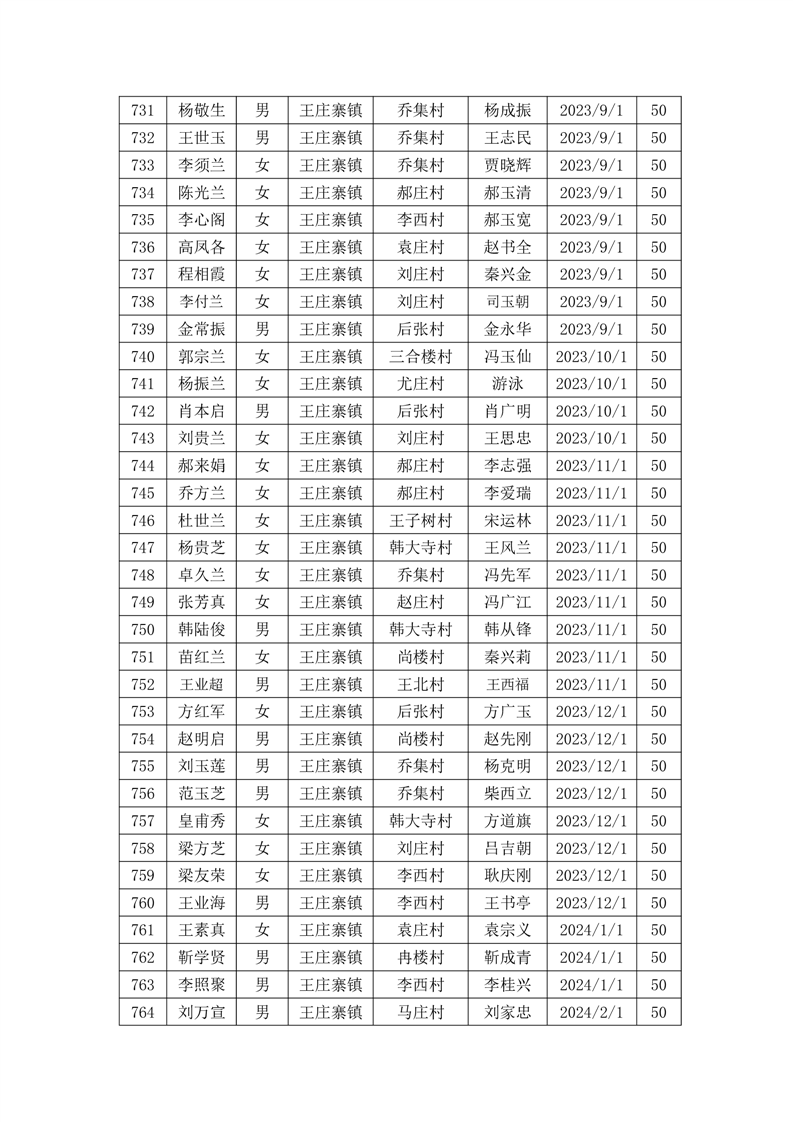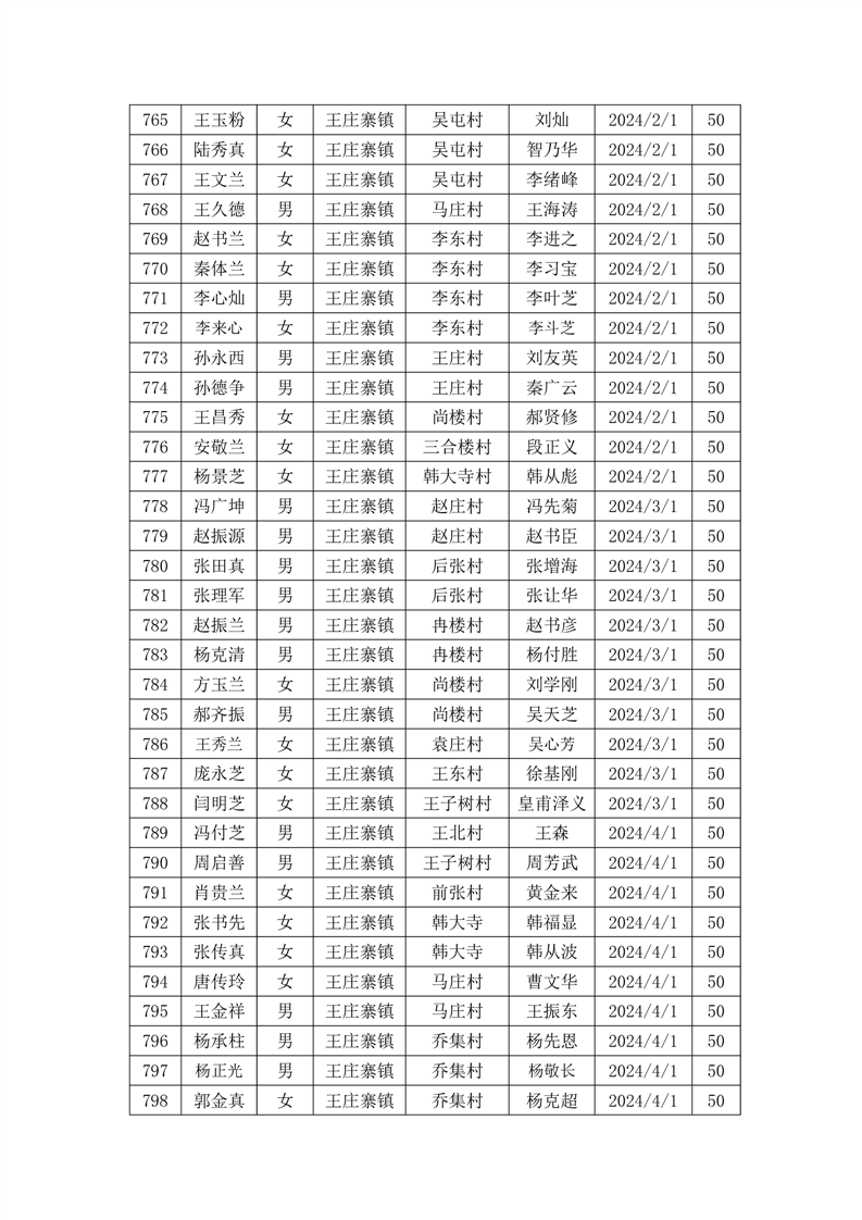 王庄寨镇2024年6月份80岁以上老人高龄补贴人员名单统计表