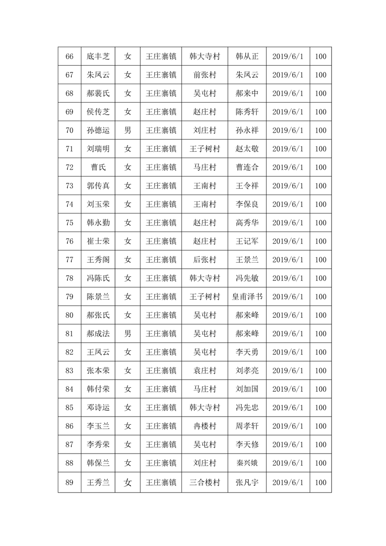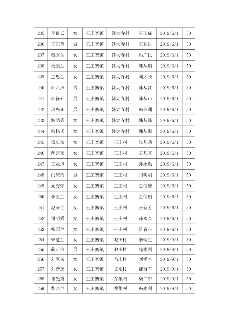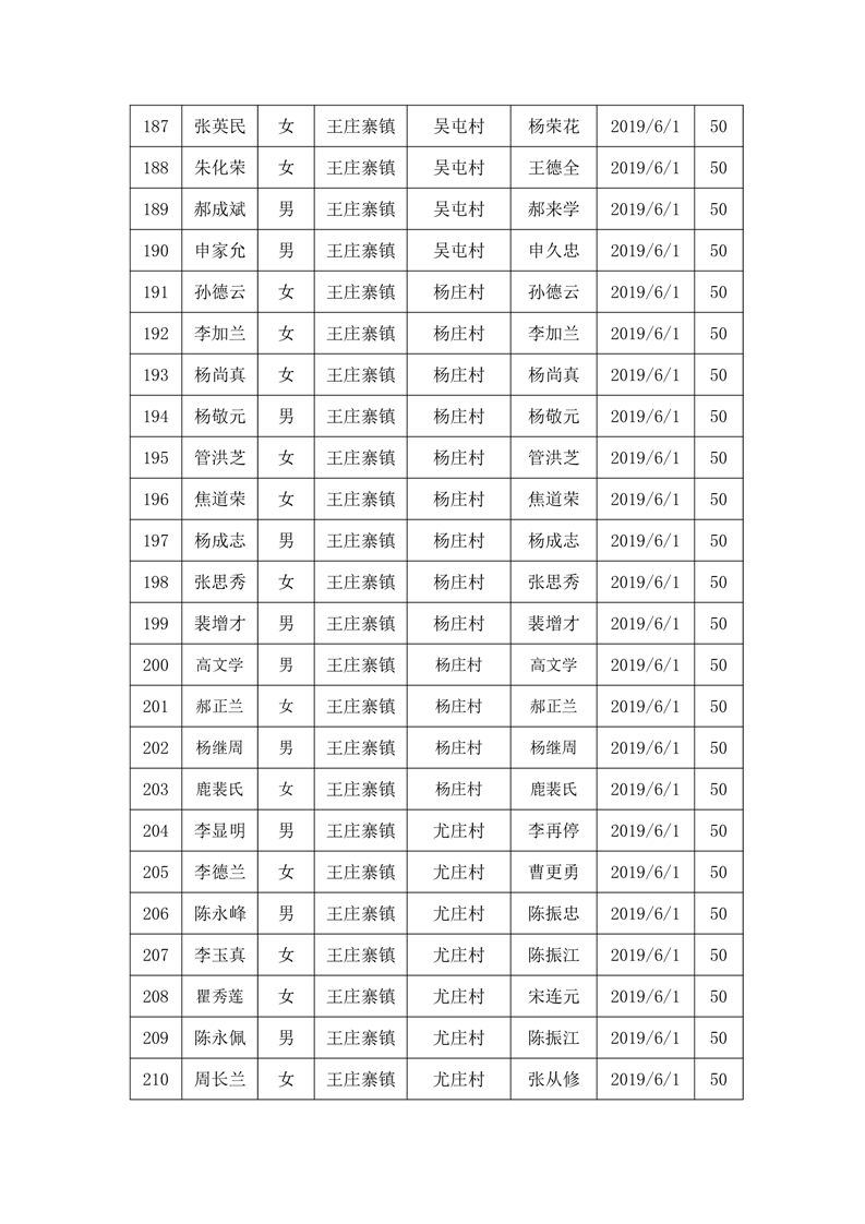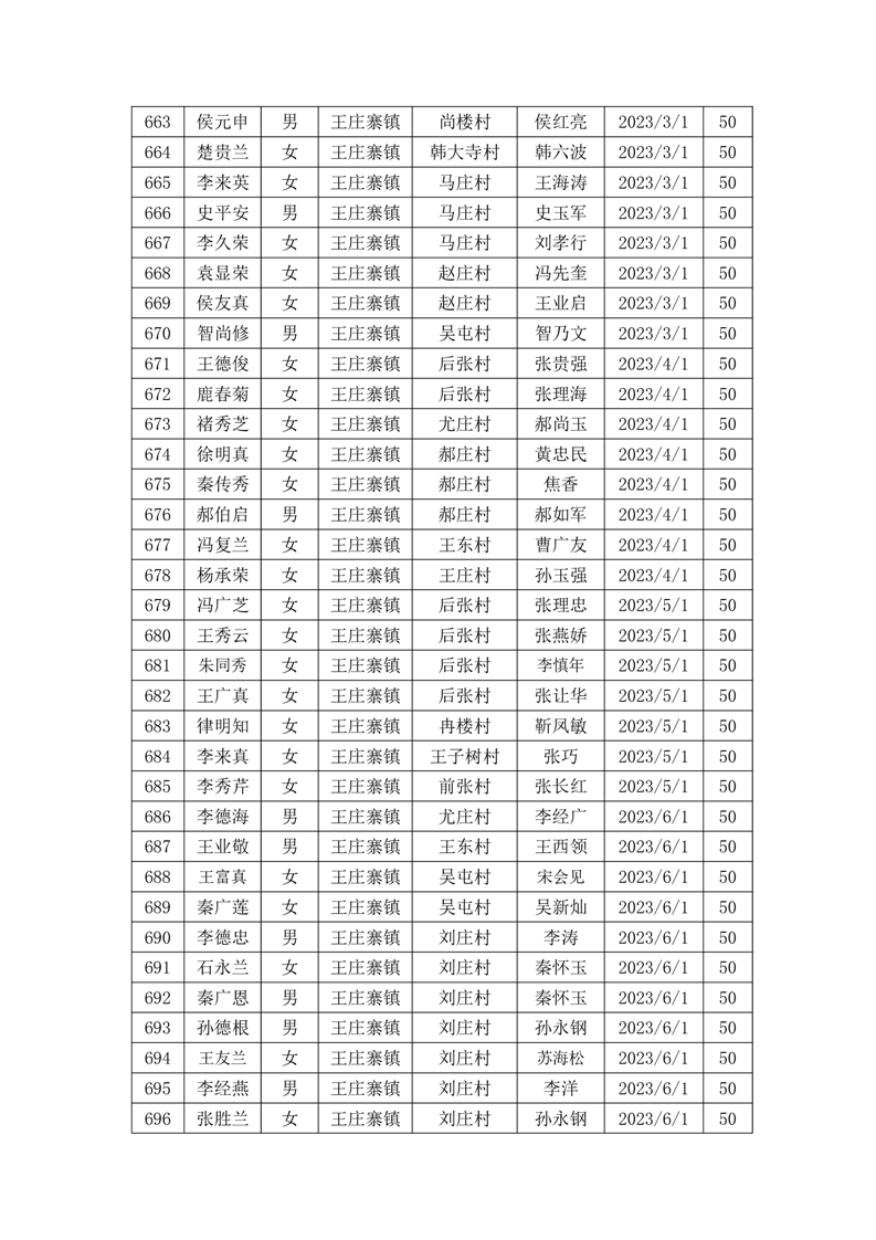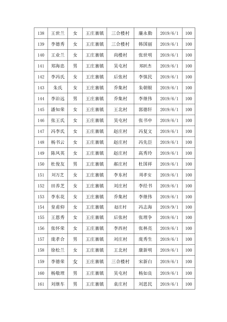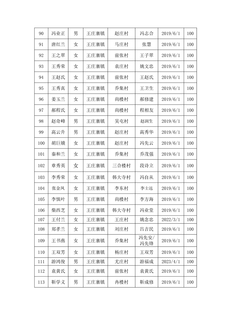 王庄寨镇2024年6月份80岁以上老人高龄补贴人员名单统计表