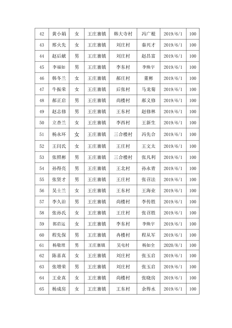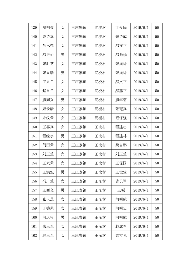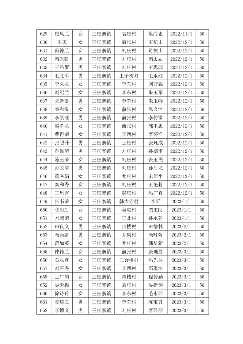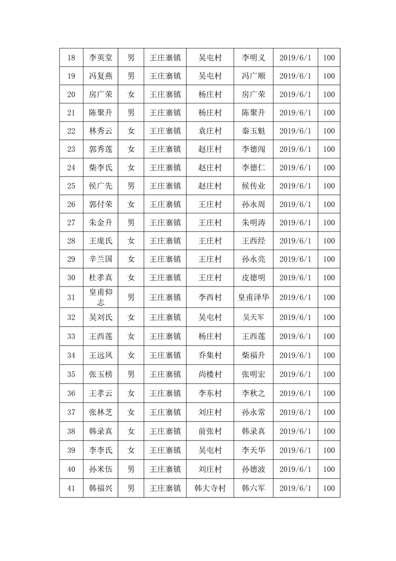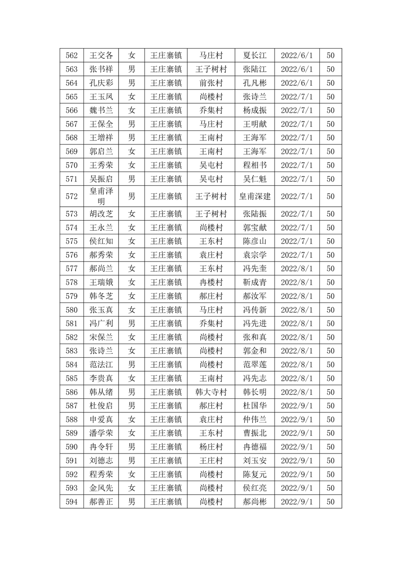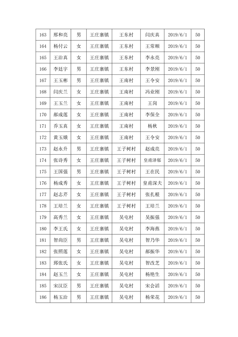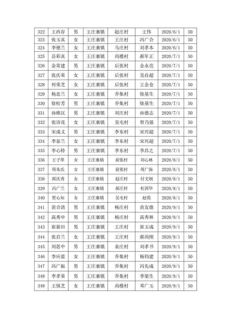 王庄寨镇2024年6月份80岁以上老人高龄补贴人员名单统计表