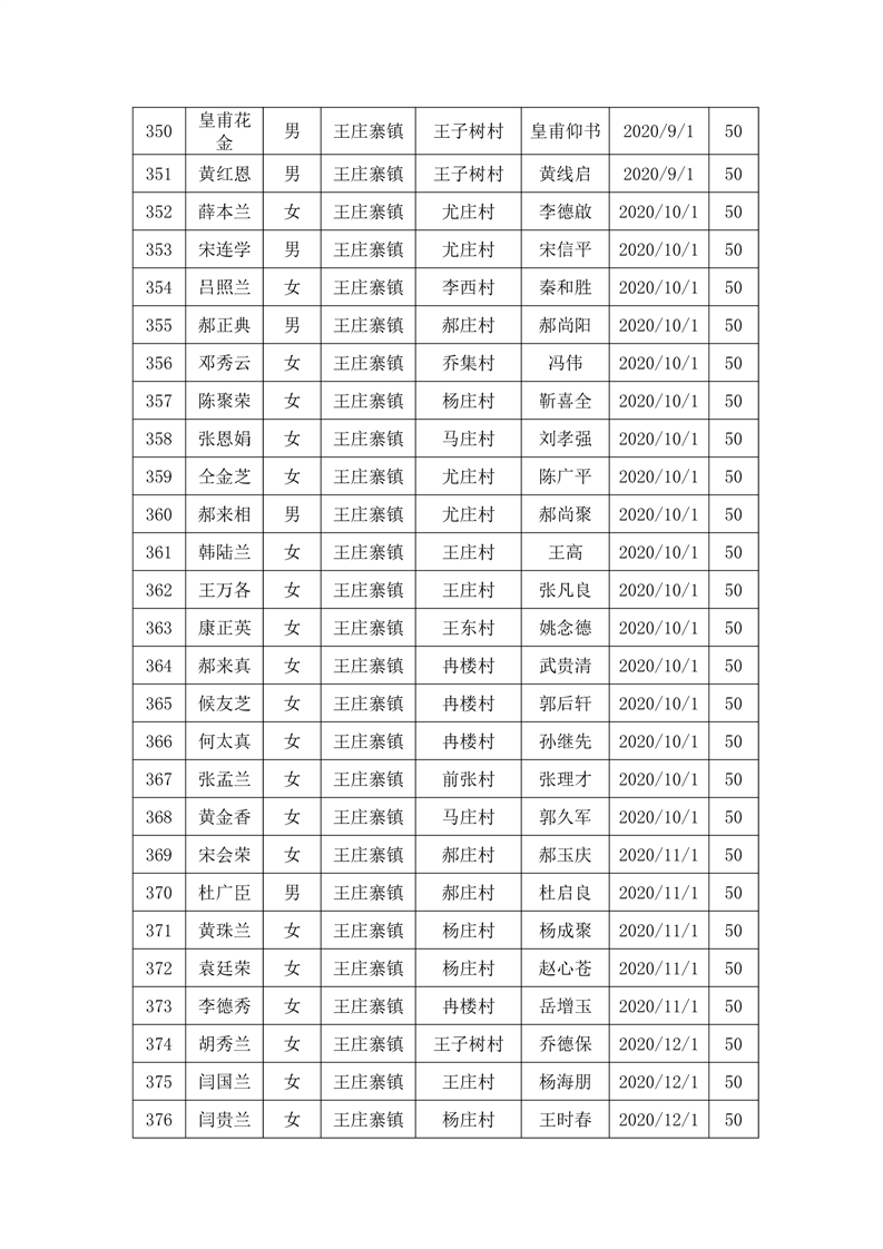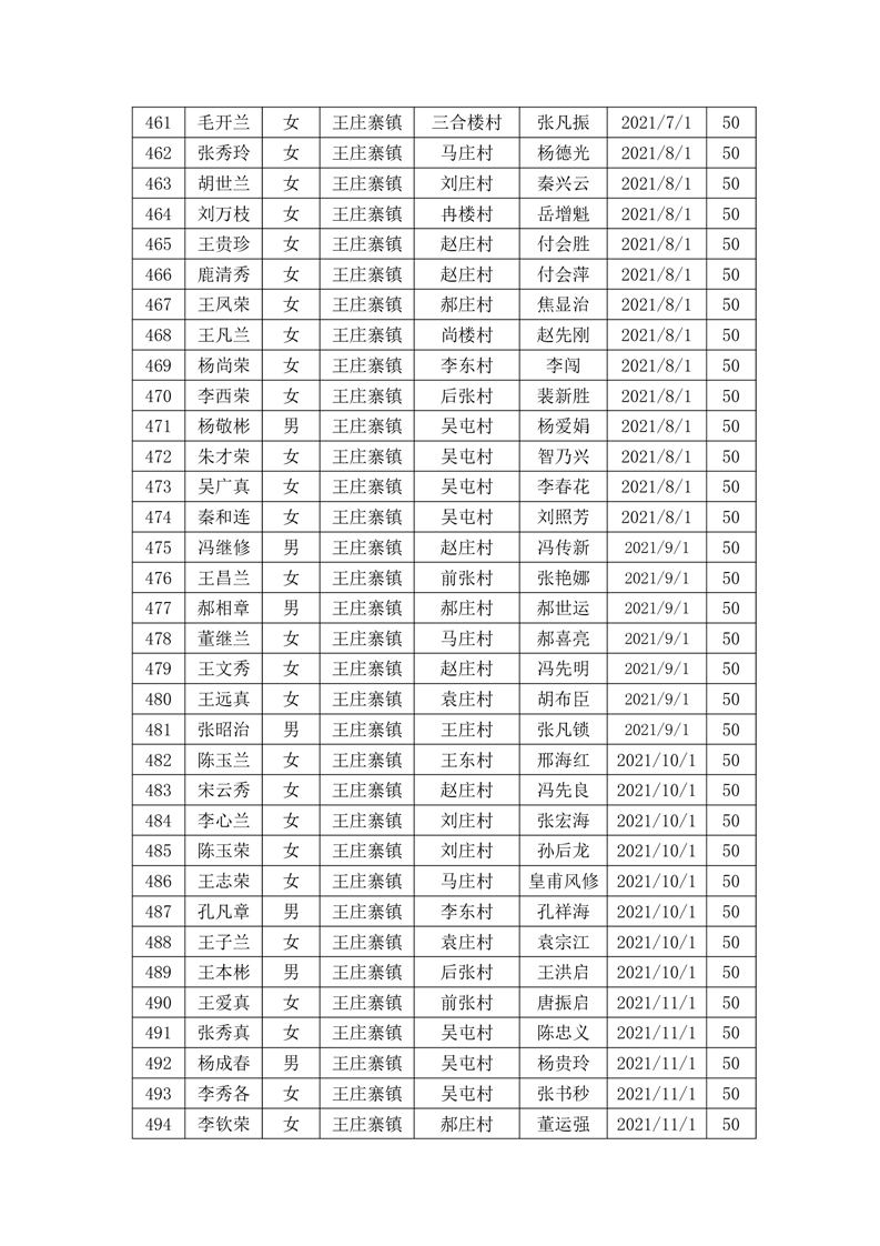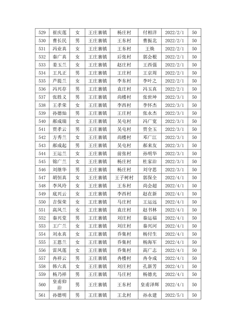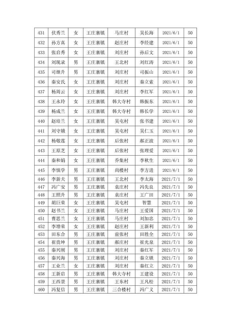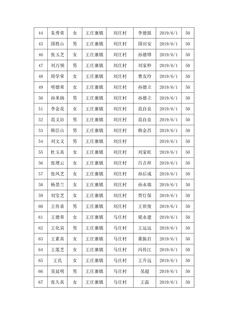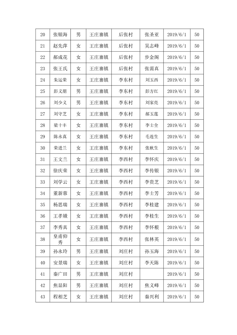 王庄寨镇2024年6月份80岁以上老人高龄补贴人员名单统计表