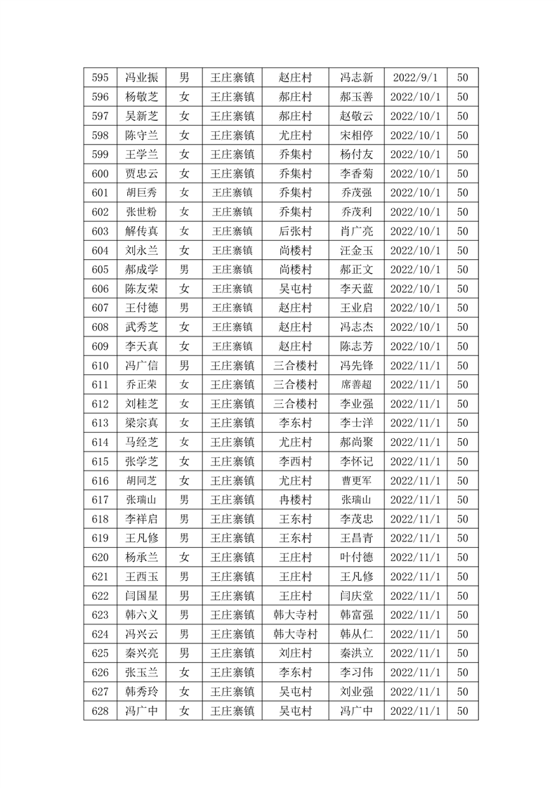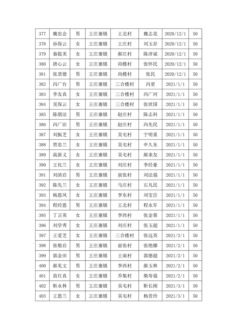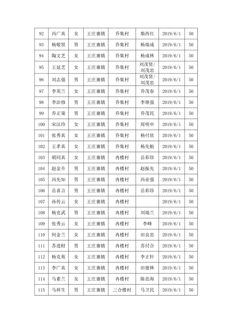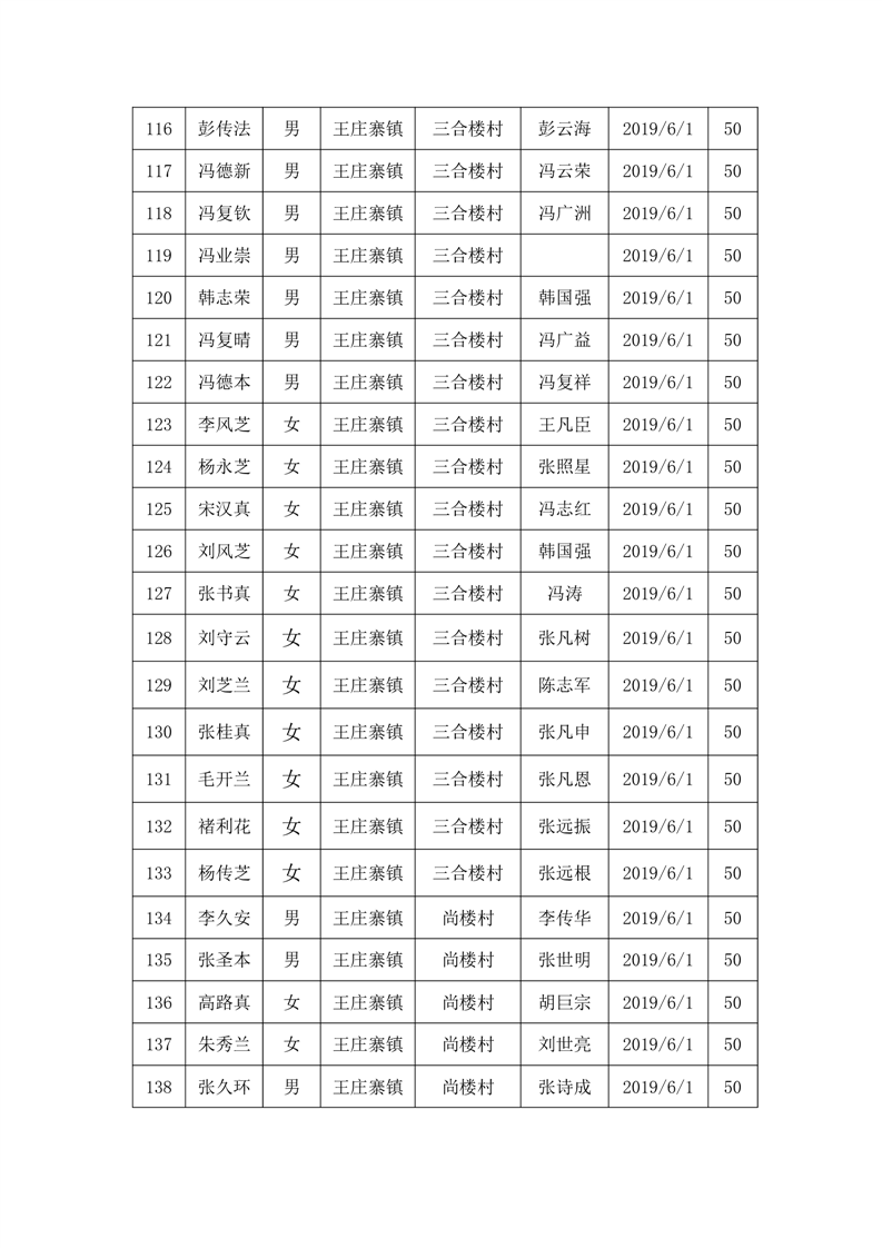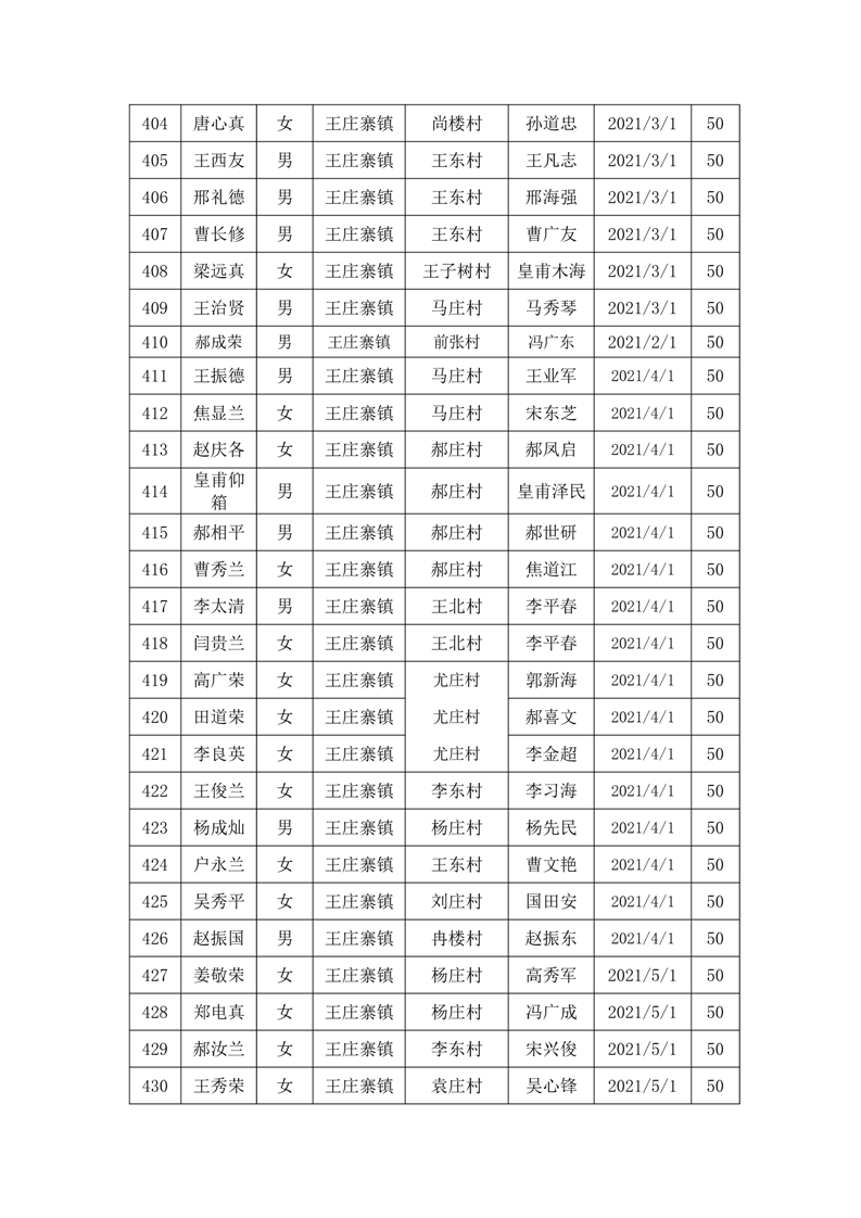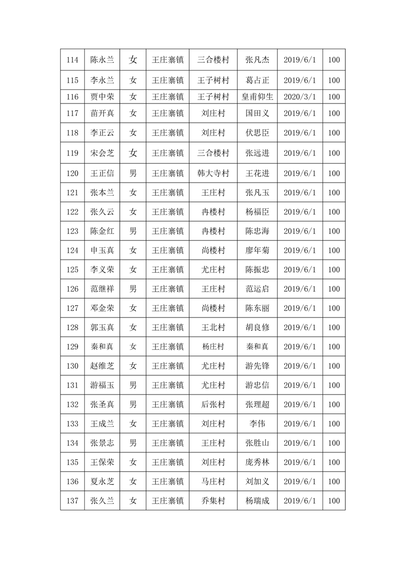 王庄寨镇2024年6月份80岁以上老人高龄补贴人员名单统计表