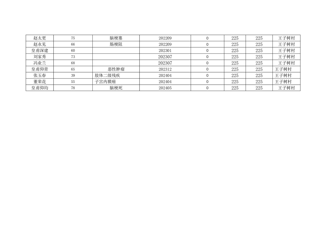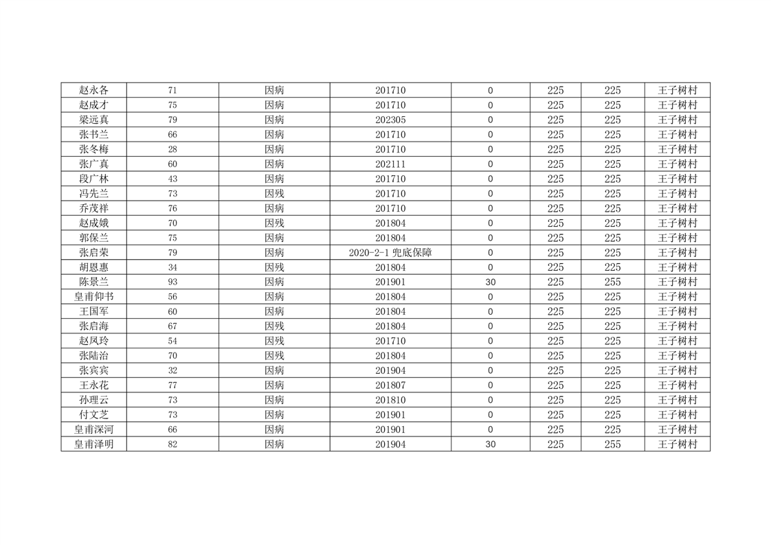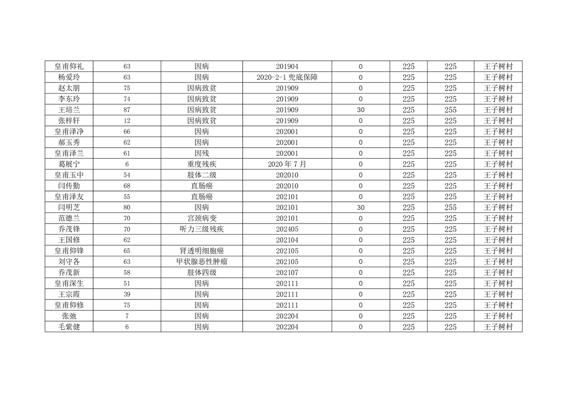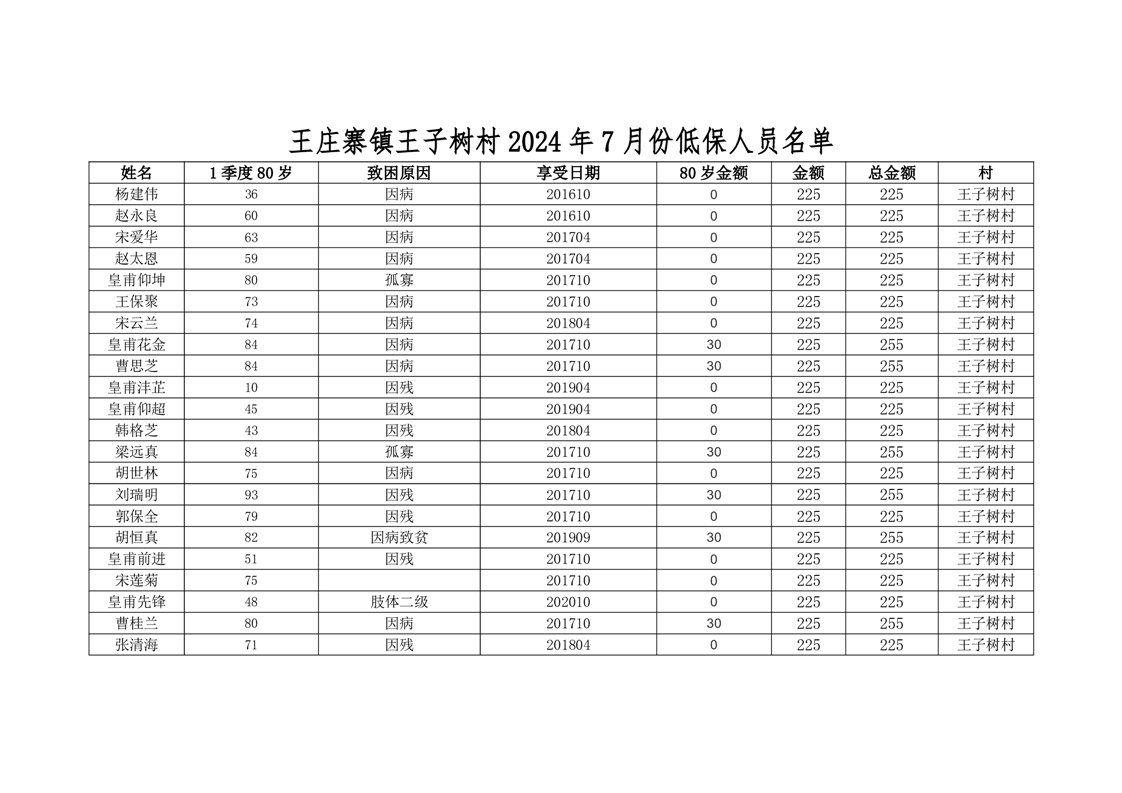 王庄寨镇王子树村2024年7月份低保人员名单