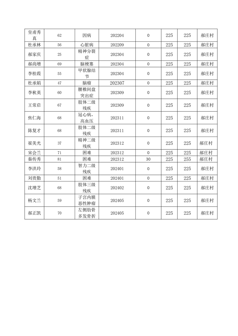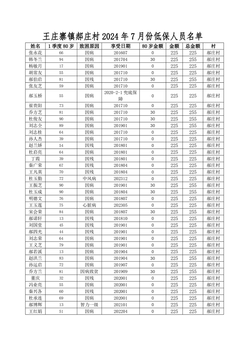 王庄寨镇郝庄村2024年7月份低保人员名单