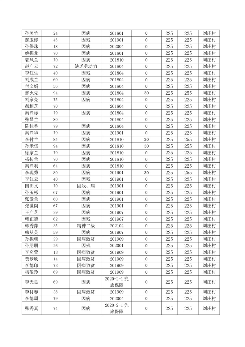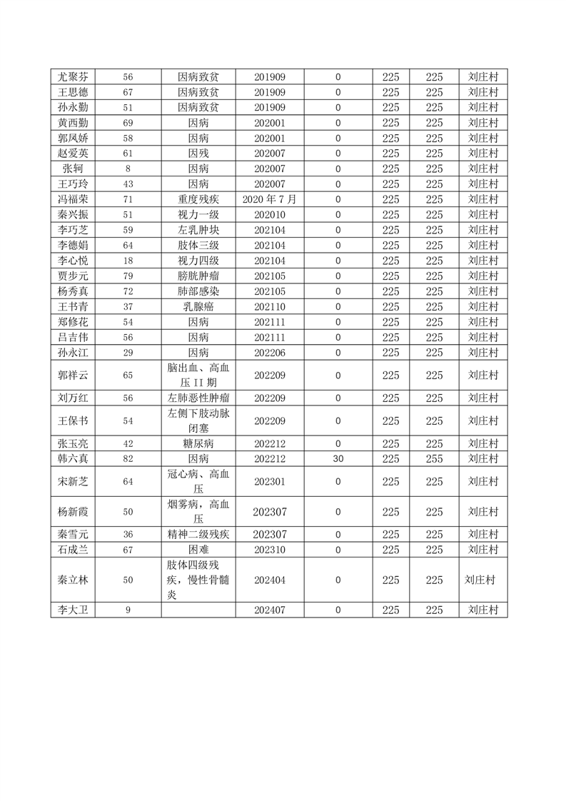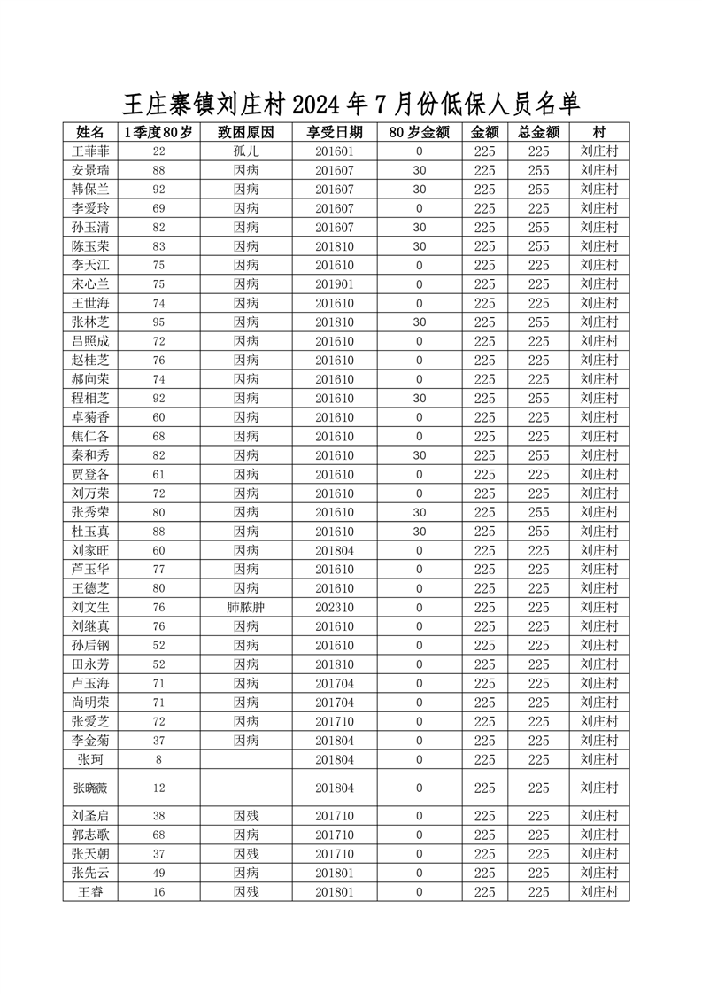 王庄寨镇刘庄村2024年7月份低保人员名单