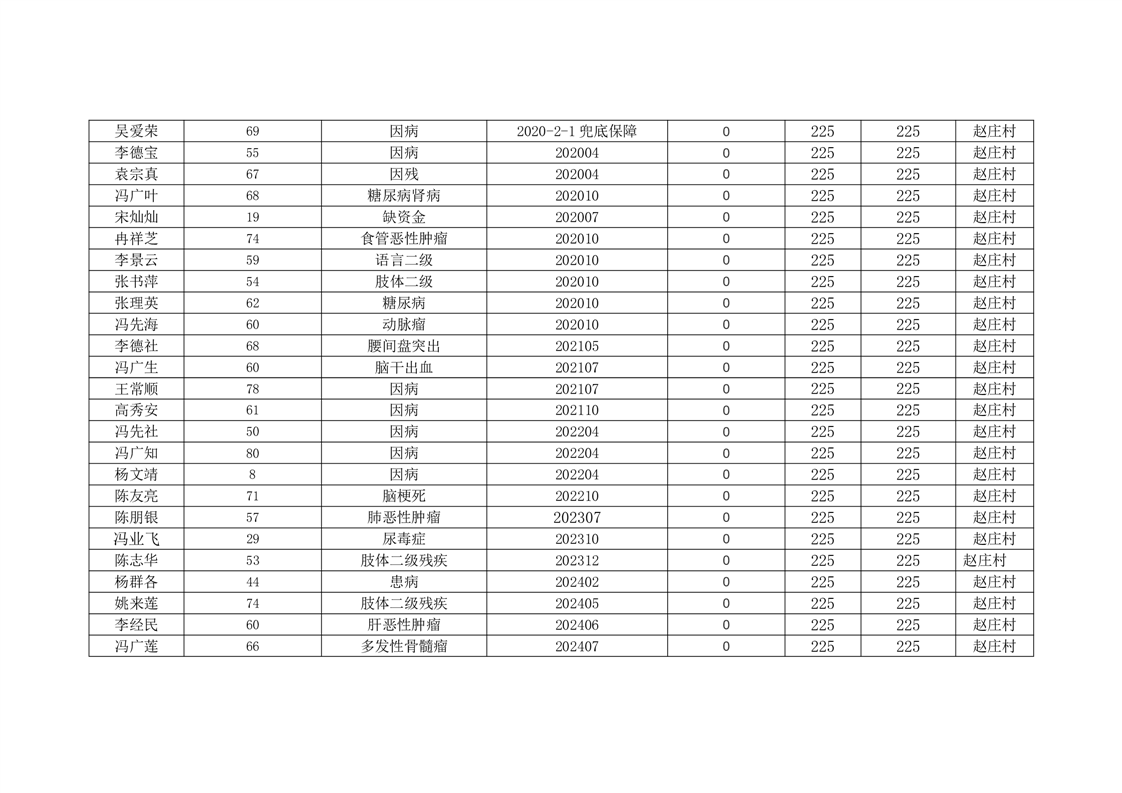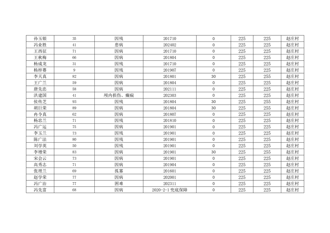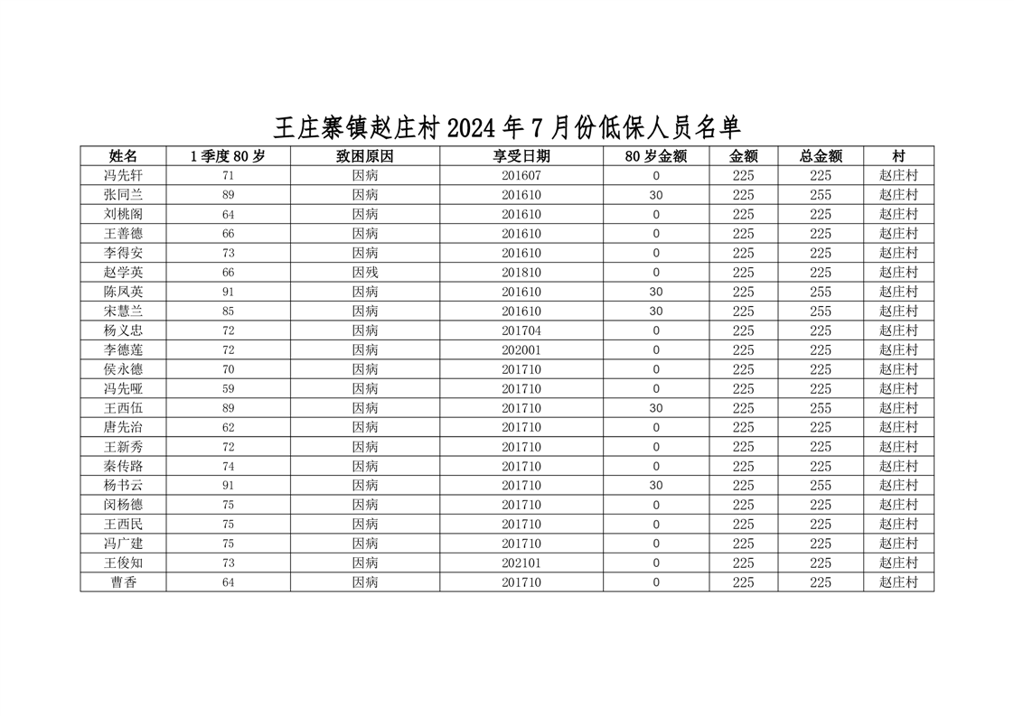 王庄寨镇赵庄村2024年7月份低保人员名单