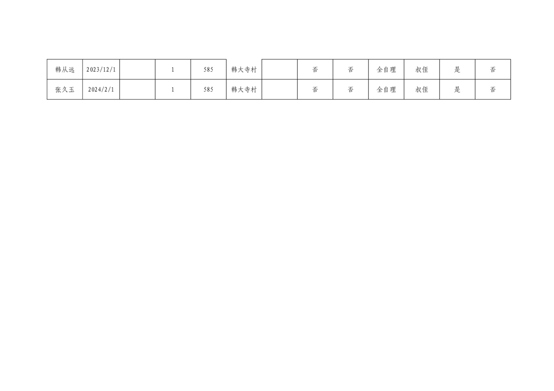 王庄寨镇韩大寺村 2024 年 7 月份特困人员名单