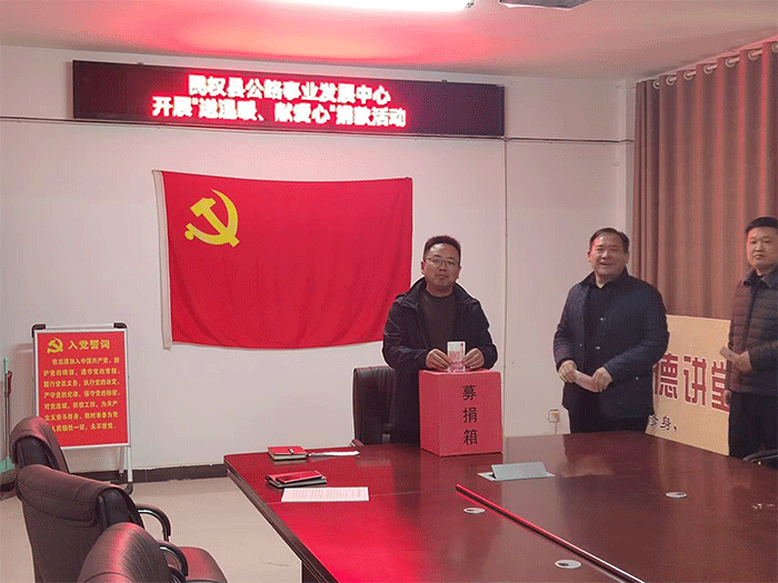 1月9日上午,县公路事业发展中心组织开展“送温暖 献爱心”捐款活动,动员全体干部职工为困难群众献上一份爱心,送上一份捐助,帮助困难群众温暖过冬。