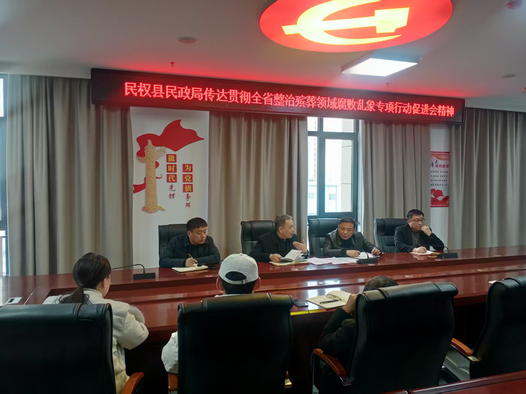 2月18日下午4点,县民政局召开专题会议,集中学习传达贯彻落实“全省殡葬视频促进会”精神,局党组副书记、副局长杜远更主持会议。县纪委监委派驻纪检组组长薛军到会指导。班子成员及各股室二级机构负责人参加会议。